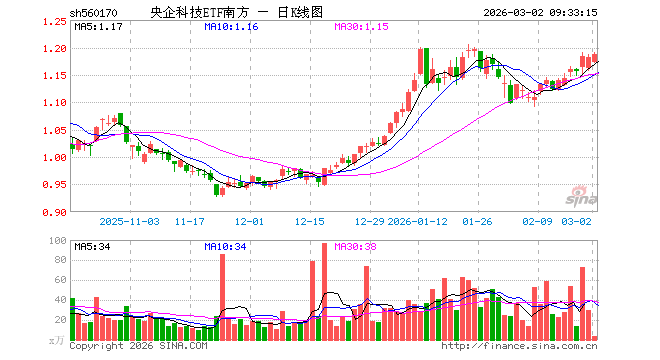 3月2日,央企科技ETF南方(560170)开盘跌0.76%,报1.173元。央企科技ETF南方(560170)重仓股方面,海康威视开盘跌1.37%,深南电路跌2.41%,长电科技跌2.87%,中芯国际跌1.84%,海光信息跌2.31%,中航光电涨1.21%,航天电子涨1.55%,光迅科技跌2.45%,航发动力涨2.38%,中科曙光跌2.36%。