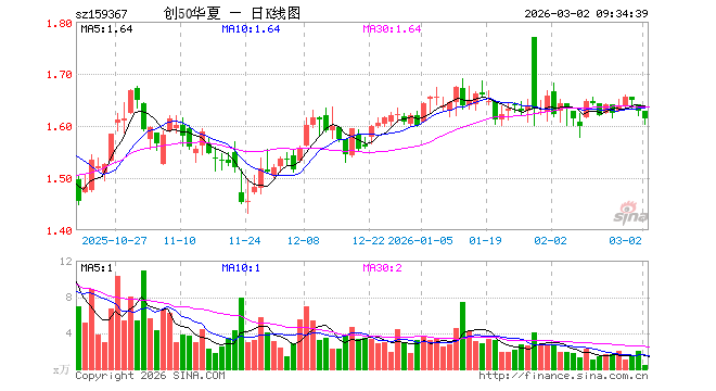 3月2日,创业板50ETF华夏(159367)开盘涨0.00%,报1.628元。创业板50ETF华夏(159367)重仓股方面,宁德时代开盘跌0.30%,中际旭创跌2.62%,新易盛跌3.37%,东方财富跌1.15%,阳光电源跌1.67%,胜宏科技跌1.34%,汇川技术跌1.60%,迈瑞医疗跌0.54%,天孚通信跌0.50%,亿纬锂能跌1.81%。