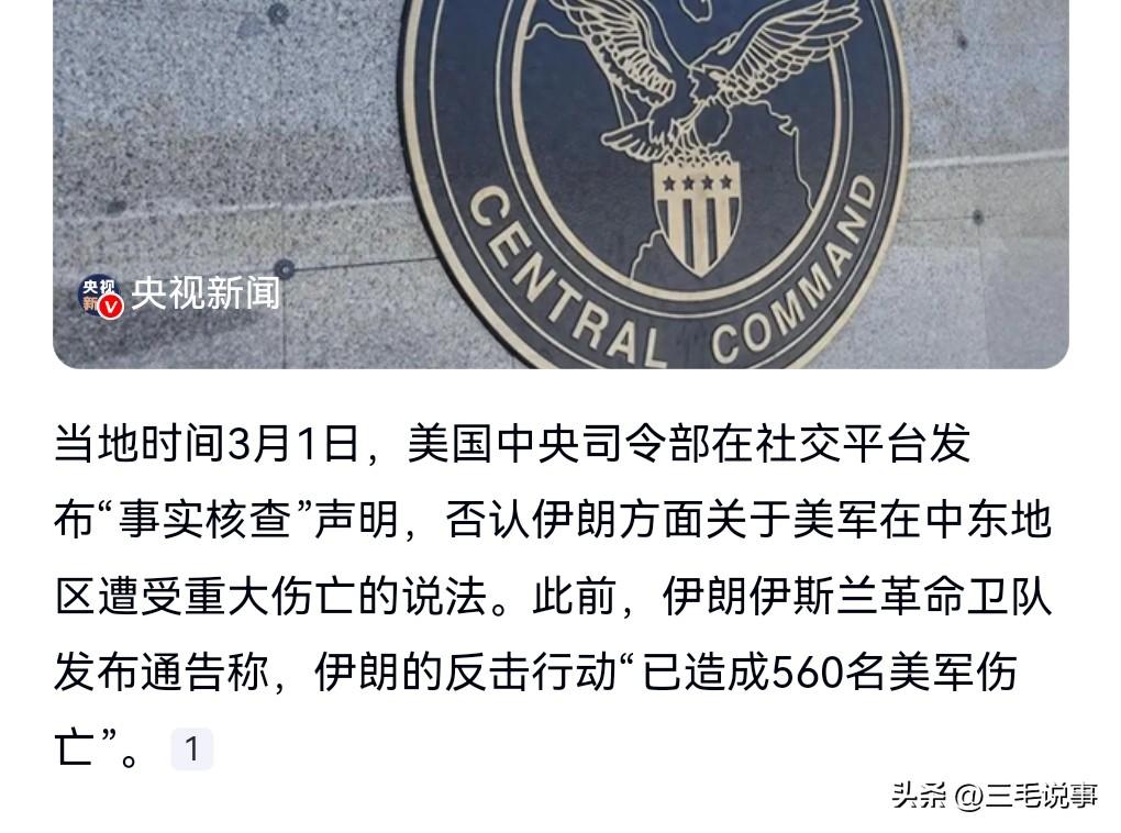 到底是谁在撒谎啊? 3月2日热搜,伊朗称美军遭受重大伤亡,美方否认。 此前伊朗方面说伊朗的反击行动已造成560名美军伤亡。 但是当地时间3月1日,美国否认伊朗方面关于美军存在重大伤亡的说法。 这就搞不懂到底是谁在撒谎了。伊朗称美军遭受重大伤亡 美方否认