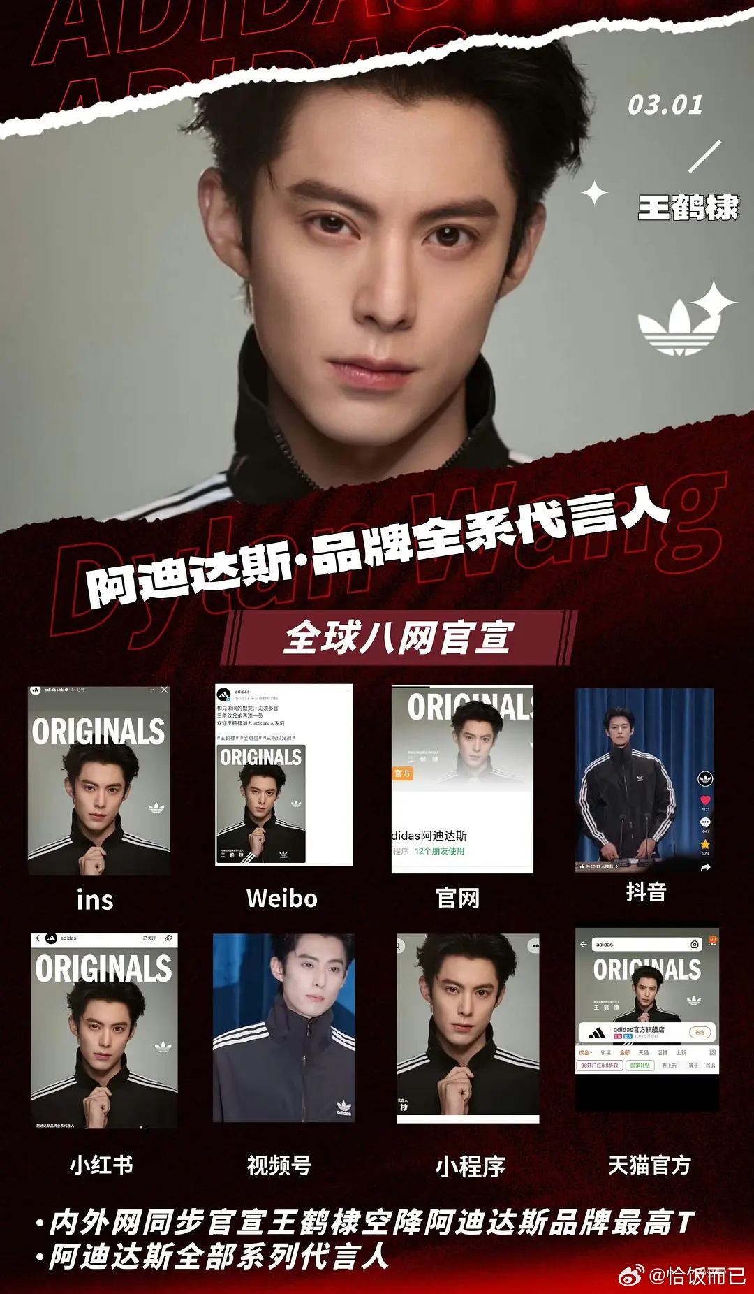 阿迪达斯王鹤棣待遇汇总:内外网同步官宣+未宣就已赞助综艺+全系列代言+多处大地广