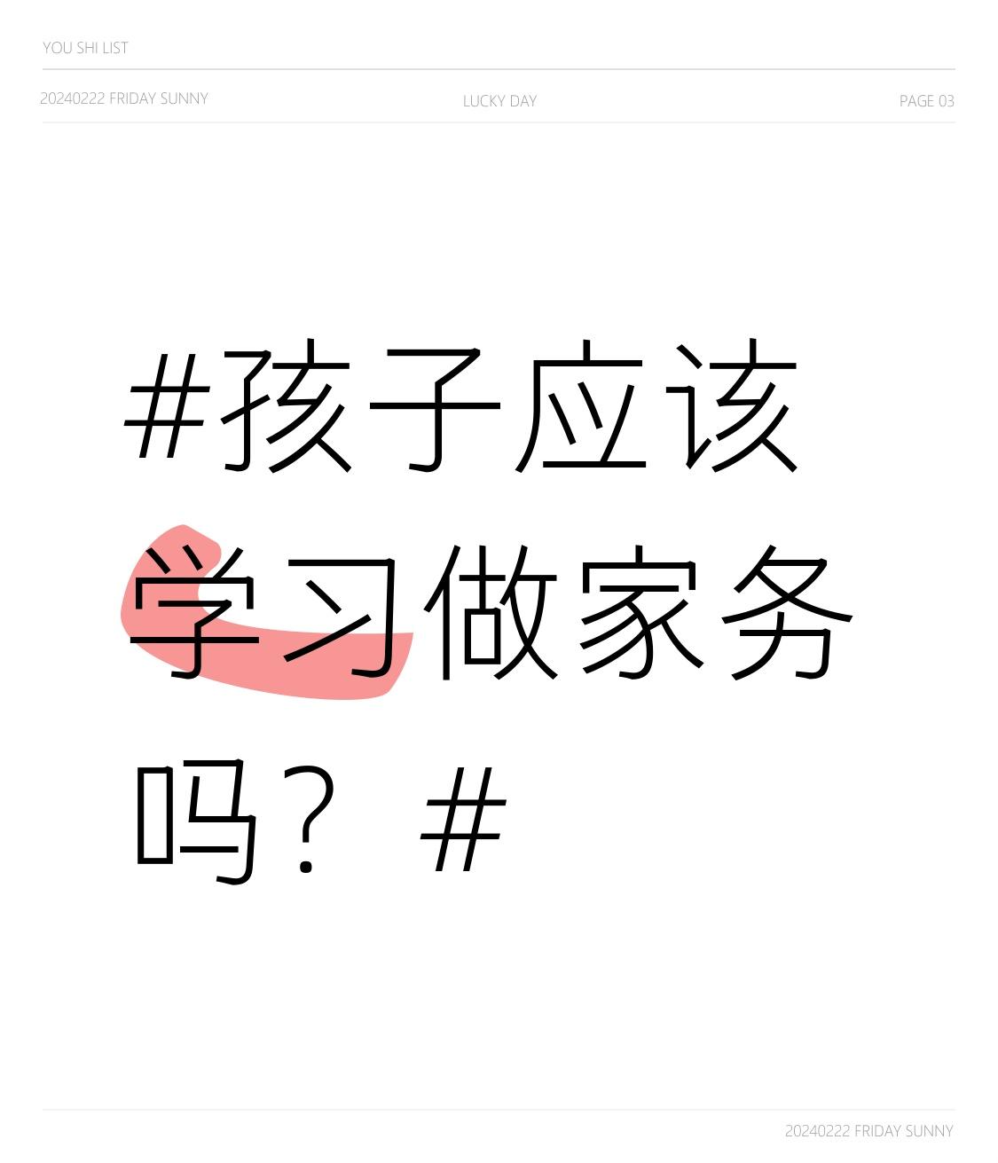 孩子当然应该学习做家务。很多家长觉得孩子专心学习就行,做家务浪费时间,可这是大错特错。 让孩子做家务能培养责任感。比如孩子帮忙洗碗,会明白这是对家庭的贡献,意识到自己行为对家庭有影响。同时还能提升独立性,学会洗衣、做饭等生活技能。 看看那些小时候不做家务的人,长大后生活一塌糊涂。不会照顾自己,结婚后因家务问题吵架甚至离婚。我们这代人受应试教育影响,缺乏生活技能。别让这种局限延续,为了孩子未来能过上高质量生活,得让他们从小学习做家务。
