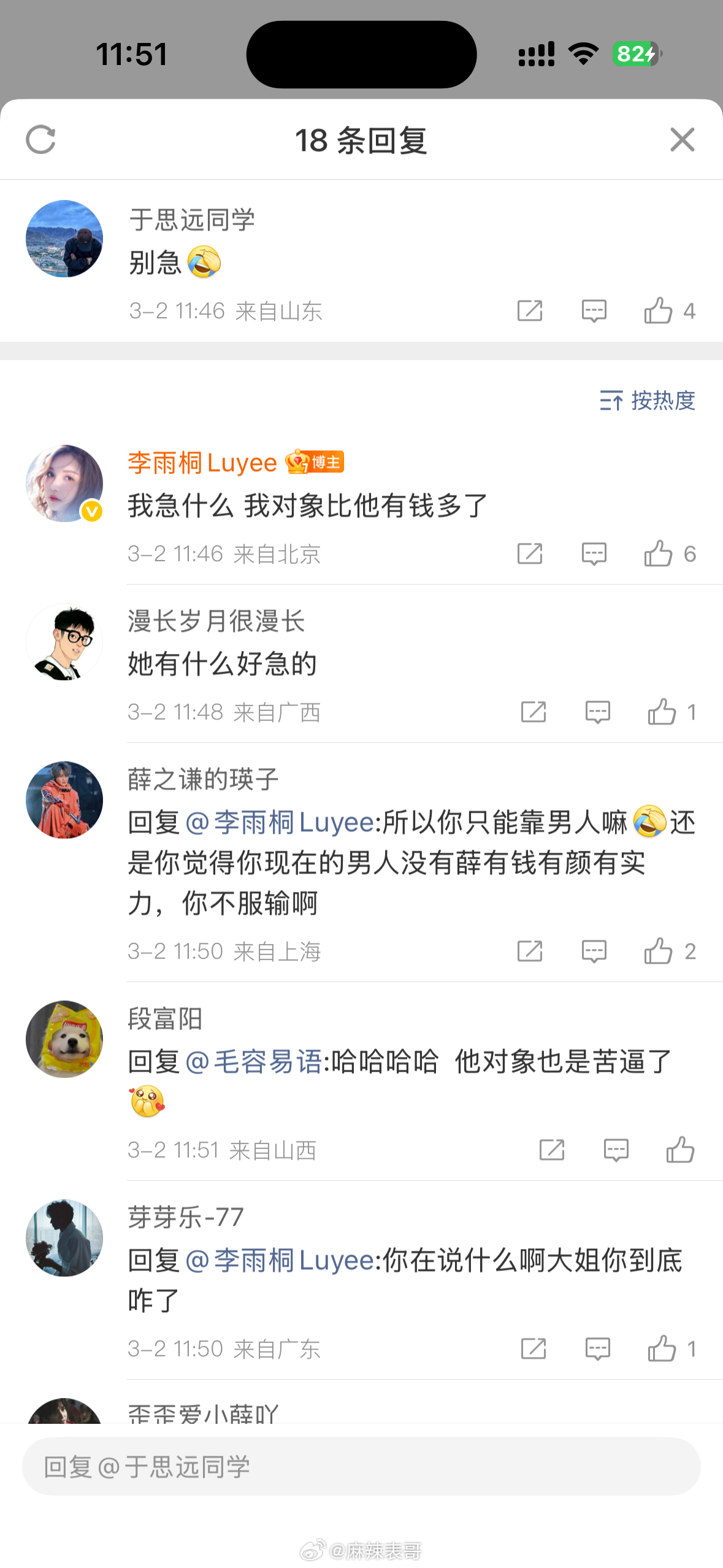 之后李雨桐又发文,说自己没有证据,还说自己老公比薛之谦有钱多了。