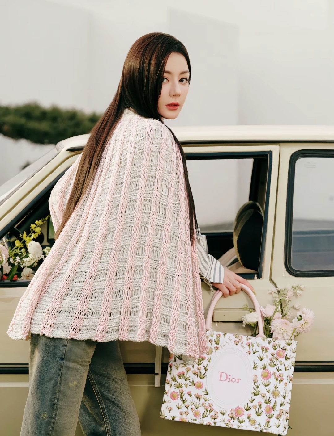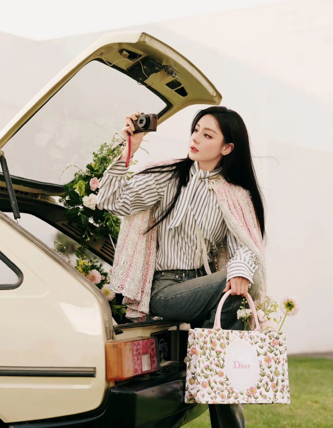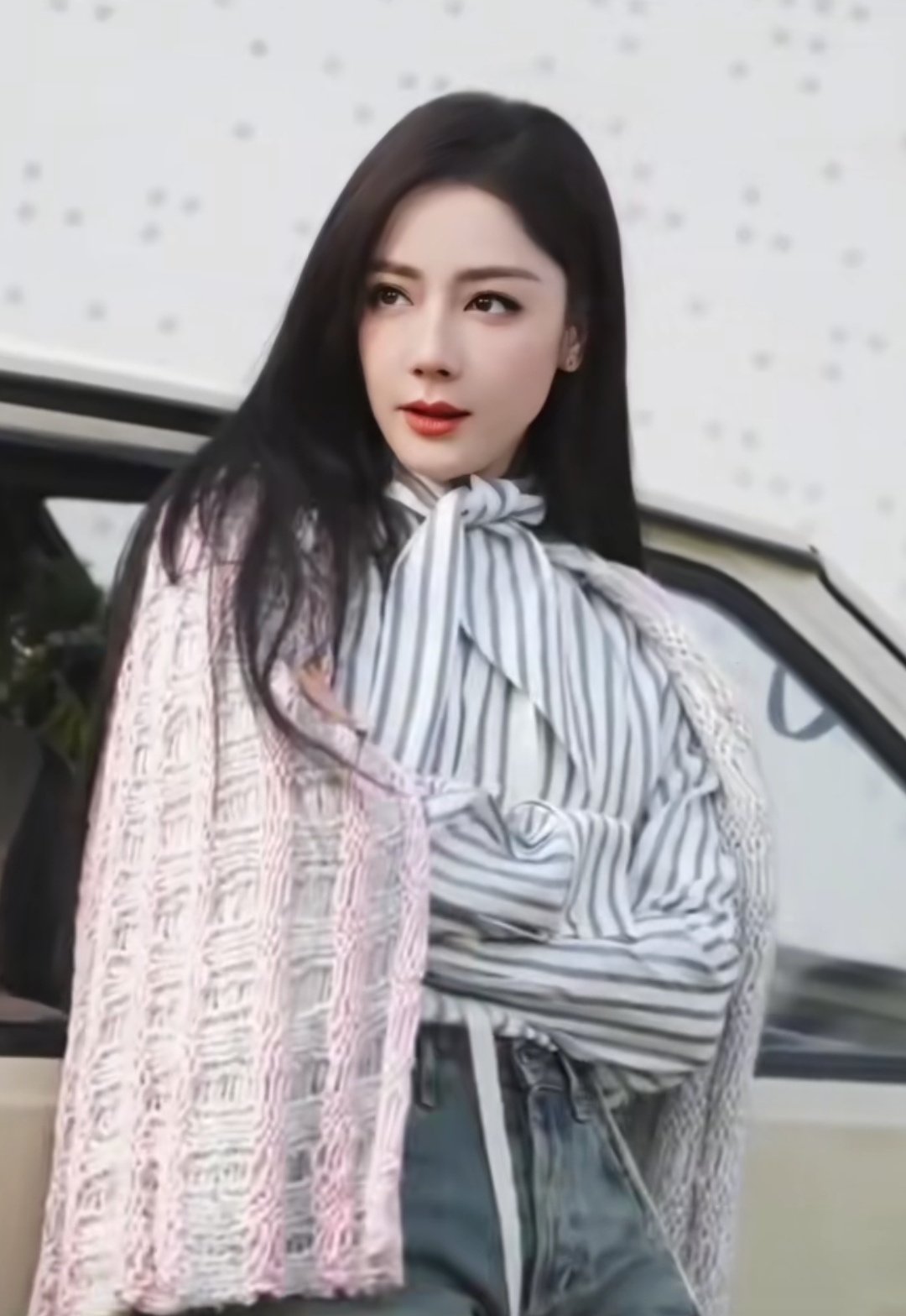 她穿的是开年杂志的粉白披肩,不同场合穿出来不同的气质!拿着相机的那张特别喜欢!!迪丽热巴闪耀巴黎