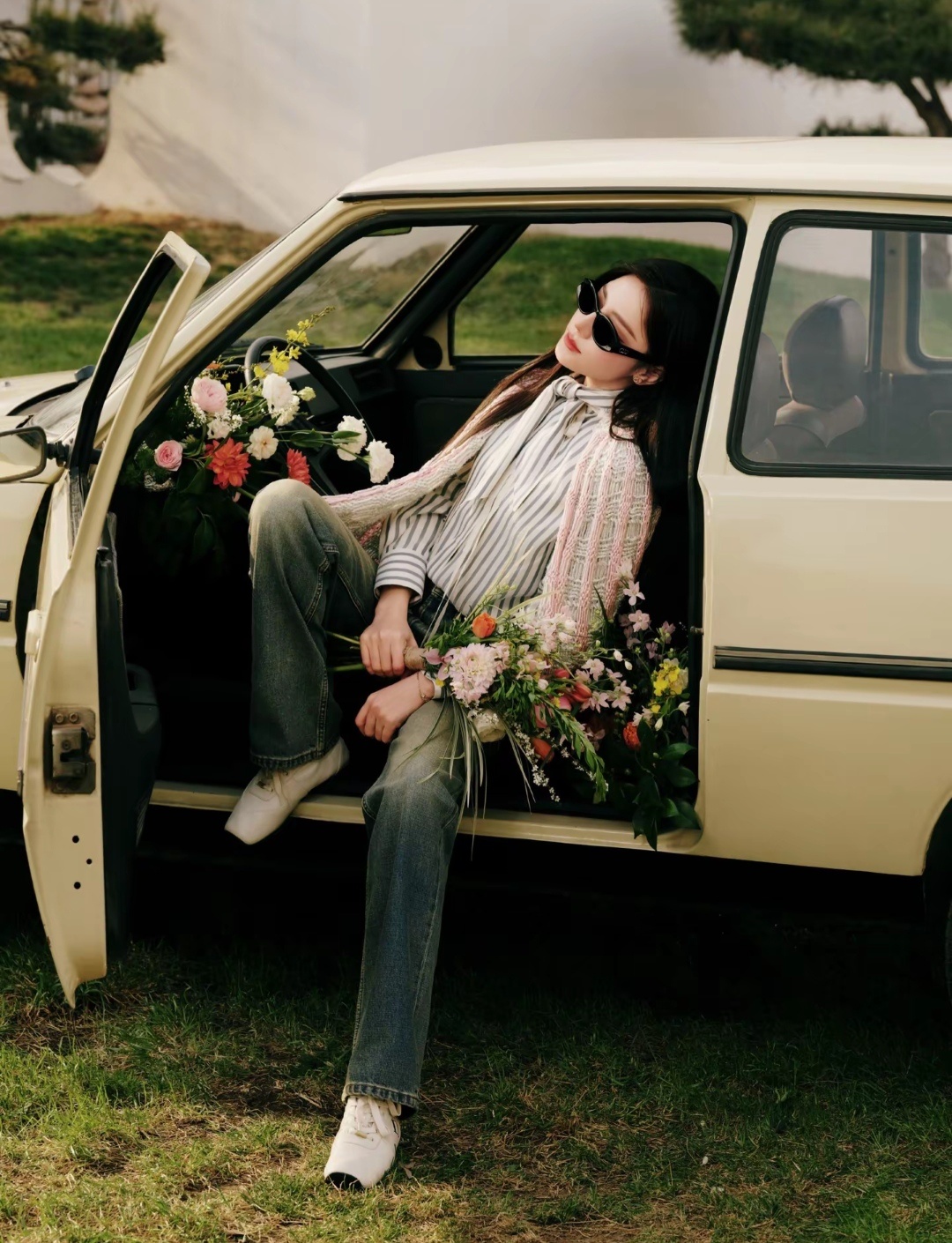 巴黎是迪丽热巴最正确的打开方式绿色的草坪,绚烂的鲜花,迪丽热巴只是站在那里,就是满满的春日气息!