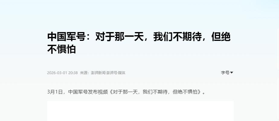 美伊冲突后,解放军发布视频:对于那一天,我们绝不惧怕。 这个消息一出整个中东地区马上风云突变,局势肉眼可见升级。 刚看到这个消息的时候,我的第一反应就是,这已经不是以前那些局部摩擦了,这一次的影响,可能直接会波及国际格局。 就像我们在B站刷到那种大事件第一时间解读一样,这种量级的突发事件,大家第一反应是关心,第二反应其实是——这跟我们到底有什么关系?国家有没有说话?国内主流舆论怎么看? 本来感觉事是离自己挺远的,可是每次一出大事,就总能看到身边朋友们讨论,甚至质疑,有没有啥瞒着我们的、我们的军队在干嘛? 这些问题不只是在讨论,事实上当天晚上,解放军的官方权威媒体就同步出手了。 很多人都忽略了,其实在重大国际事件上,咱们的解放军消息一向很快。 这次更是同步发声,等于直接放了最强信号出来。 我们要说的,就是钧正平和中国军号,这两个大家肯定不陌生,这几年每次国际风浪大一点,他们总是第一时间带节奏。 这次更是没让大家等几分钟,消息一出来,解放军两大官方平台就几乎同步发布权威声音,直接引发全网关注。 先说钧正平,严格意义上来说,他本身就是人民日报官方平台和解放军一线新闻传播中心直接孵化、官方认证的权威评论账号。 我看过他几乎所有的文章风格,最大特点就是:字数极简但全是干货。 这一次评论更特别,只有177个字,但句句扎心。 通篇就传递出一个核心观点:和平真不是一句口号,也不是祈祷就能维持下来的,谁要放松警惕,国家和民族的和平安全说没就没。 讲得很直接,而且堪称极限压缩逻辑表达,越是大事越要用最少的字,点明最大的问题。 评论里还专门提到,居安思危,其实不仅仅是给我国自己说的,伊朗现在的处境,更值得他们自己和整个地区参考,我们要有足够的警觉性。 这道理其实说穿了就是,大国安全不能靠别人给,必须自己守护。 咱们再来聊聊中国军号。这也是大家非常熟悉的平台,现在单一平台的粉丝数已经将近5000万,是解放军直属管理的移动旗舰信息平台。 一个平台号比很多明星还火,说白了,就是风吹草动他们发一个消息,立刻全网刷屏。这次他们的视频内容可以说是全程高能。 视频没有搞那种苦情煽情的套路,直接用一系列火箭军战略打击力量的画面,视觉冲击拉满。 最直观的核心其实是展示实力,但又不是赤裸裸的炫耀,更像直接摆在你面前,“你们可以试试,我们没在怕的”。 视频里的官兵发言其实也很有分寸:不期待战争,但该来的决不退缩;我们渴望建功立业,但前提是坚决守住和平。 说白了就是,不主动挑事,但绝不会被动挨打,更不会被威胁。 实际上,对比来看,国内外的信息差有点明显。 国外各种消息有时候会带节奏,比如最近有些势力开始渲染,“美国和以色列已经打到这个地步,谁还能挡?” 特别是少数国家借机吹嘘所谓“天下无敌”“没有对手”,还一厢情愿地以为,别的国家一定会乱阵脚。但事实是咱们自己的国防和军队早就不是被动挨打了。 中东局势刚一有风吹草动,国内官方权威平台马上用实际行动和高度统一的表态,告诉大家:我国坚守和平底线,同时绝不惧怕任何形式的威胁。 这次事件其实非常有代表性,它直接告诉我们——和平不一定是靠谈判、呼吁或者忍让换来的。很多时候真的得靠自身的实力和底气。 钧正平说得特别直白:放松警惕,就是给各种别有用心的敌对势力留下空间。 哪怕是在自己国家看起来一切都很安全的环境下,真正的国防安全意识,永远不能丢。 大家记得吗,每次咱们国家发生重大国际事件,网络上一堆调侃“只要东风不倒,世界都稳得住”,其实背后真的是这个逻辑。 光靠念经祈祷不行,不把防御力练到家,真的没有永久的安全。 评论里这句话,我觉得可以摘出来细品:和平不会凭空而来,也不能靠祈祷守护。 谁能守住安全,就是谁能维护住和平。 过去几年,咱们解放军的表达越来越国际化、简明化。 有没有发现,每次国际局势紧张的一瞬间,官媒平台都能用最短时间抛出简短但极有力量的评论和视频,不带复杂逻辑,但每句话都让人能读懂,甚至让国外对手第一时间get到信号。 参考:澎湃新闻——中国军号:对于那一天,我们不期待,但绝不惧怕