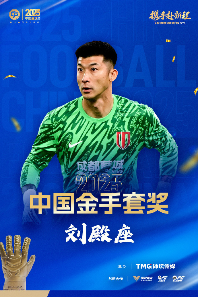 官方:成都蓉城门将刘殿座获得2025中国金手套奖