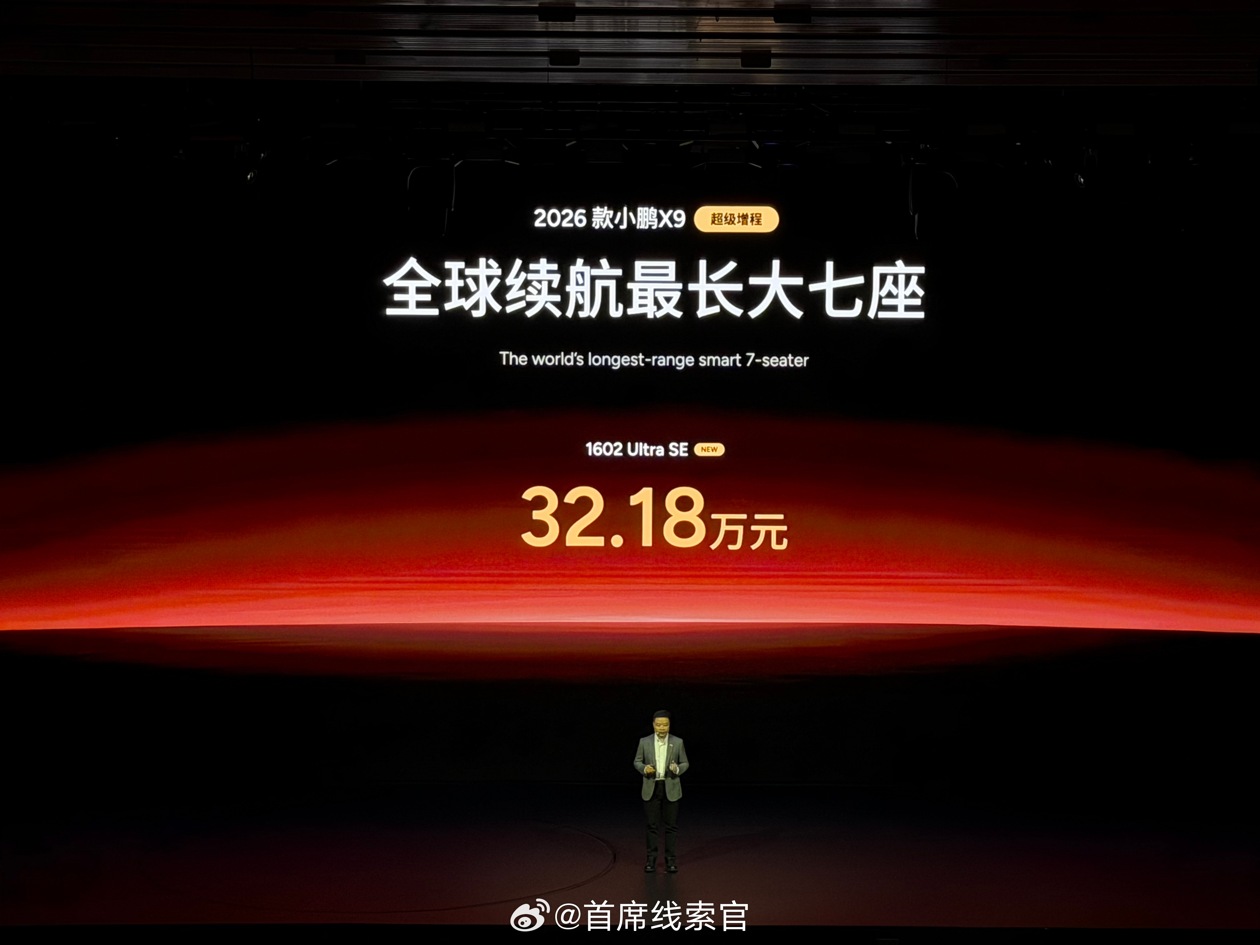另外,2026款小鹏X9超级增程新增1602 Ultra SE版本,价格为32.18万元。