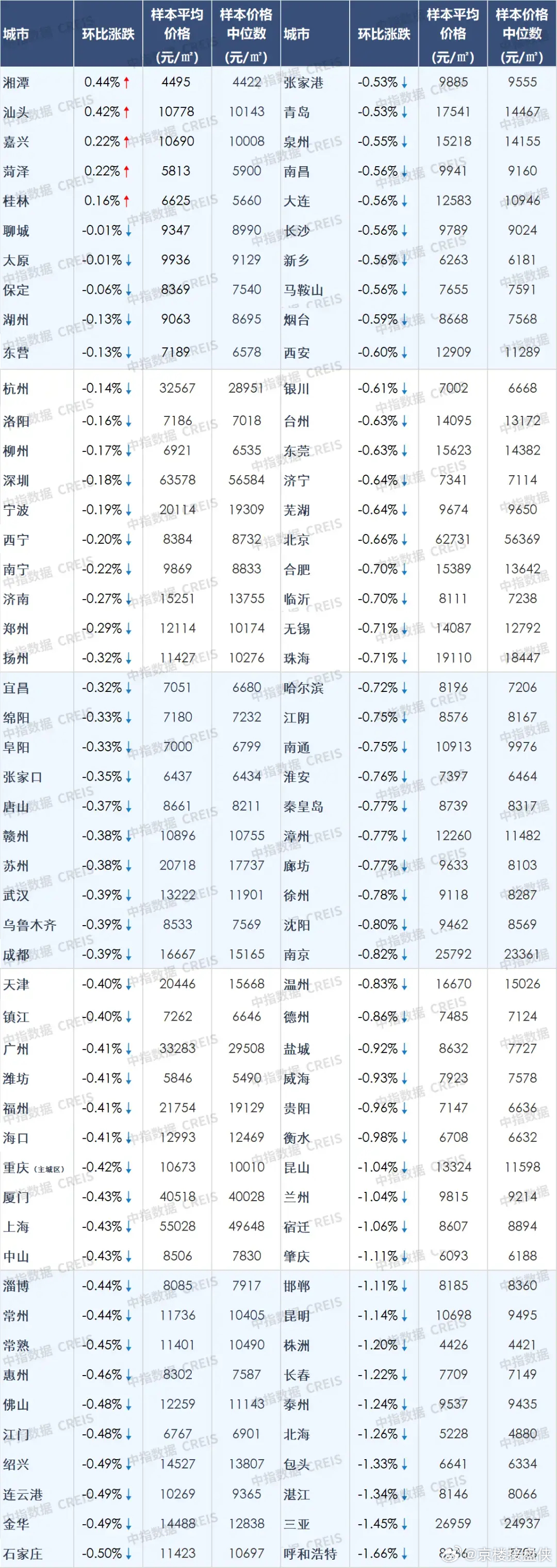 中国房地产指数系统百城价格指数对全国100个城市新建、二手住宅销售市场的调查数据:2026年2月,受春节假期影响,市场挂牌及交易活跃度季节性回落,百城二手住宅均价为12835元/平方米,环比下跌0.54%,跌幅较上月收窄0.31个百分点,同比下跌8.78%。新房方面,假期期间,多地政府与房企普遍推出购房节、降价促销等活动,但新推项目整体较少,以存量项目去化为主,2月百城新建住宅均价为17107元/平方米,环比微跌0.04%,同比上涨2.37%。今年前两月,百城二手住宅价格指数环比跌幅较去年下半年明显收窄,2月跌幅收窄至0.54%。春节假期期间,业主挂牌及调价意愿有所下降,一定程度上减缓了价格下行态势二手住宅方面,各线城市二手房价格环比跌幅均有所收窄,2月一线、二线及三四线城市二手住宅价格环比分别下跌0.42%、0.57%、0.54%,环比跌幅较上月分别收窄0.72、0.30、0.19个百分点,同比分别下跌7.85%、9.44%、8.51%。从涨跌城市个数看,5个城市环比上涨,95个城市环比下跌。新建住宅方面,2月,一线城市新建住宅价格环比下跌0.07%,同比上涨6.51%;二线城市环比上涨0.08%,同比上涨1.70%;三四线代表城市环比下跌0.23%,同比下跌2.34%。从涨跌城市个数看,15个城市环比上涨,84个城市环比下跌,1个城市持平。(图1新房,图2二手房)