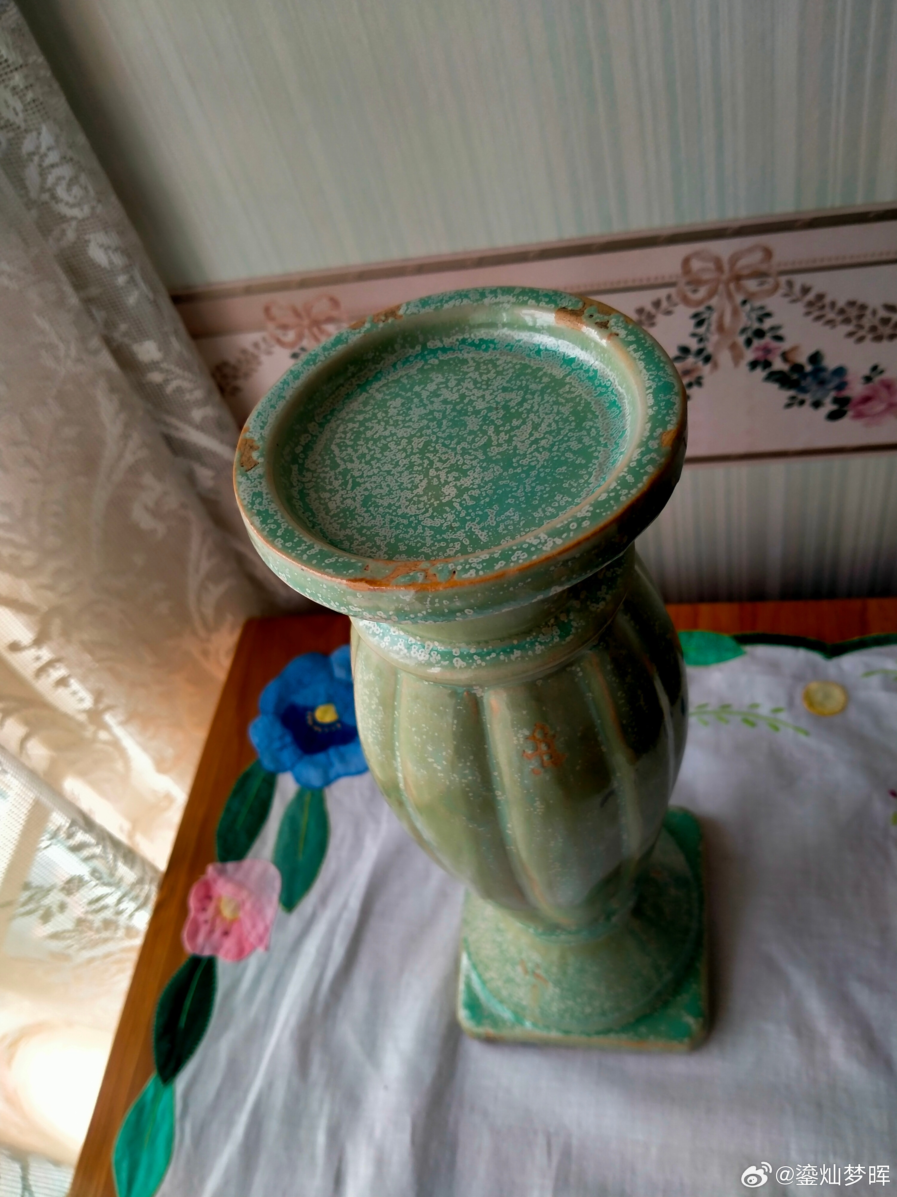 每周鉴赏收藏精品之北宋龙泉窑青釉烛台 可能是手机相机调色的原因,照片中的绿色被加深了,实物泛青不泛绿。 北宋龙泉窑瓷器,古人的评价是“质颇粗厚”。我们通过本件藏品,看看都是什么表现: 釉面最主要的表现,就是白色的斑点。这是北宋时期龙泉窑最明显的特征。在一些馆藏瓷器中也可以看到。究其原因,就是釉料研磨不细,颗粒晶体所致。似乎釉料中加入玛瑙的汝窑和官窑,也有此类情况,只是没有龙泉窑这么严重而已。 本件北宋龙泉窑青釉烛台,周身比较均匀的布满白斑。肯定是瑕疵。但也是真品的依据之一。现在仿也不是很容易的。 北宋时期龙泉窑釉面的特征之二,就是施釉不均匀,包括釉色不均匀,露釉,以及流釉积釉。 北宋时期龙泉窑瓷器的胎土泛黄土色,酥松不密实。但似乎这个时期,底足没有火石红。反而南宋汝窑工匠加入后,龙泉窑瓷器胎釉结合处就有火石红现象了。 本件北宋龙泉窑青釉烛台的真品特征之三,就是使用痕迹。本件藏品在当时,肯定是经常手持使用,以及擦拭,器物中部的釉面磨损明显比上下两端严重。符合情理。 基于如此,本件北宋龙泉窑青釉烛台,应该是件真品。