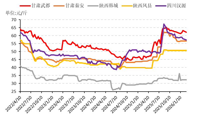 图1部分特级红花椒产区批发均价走势图