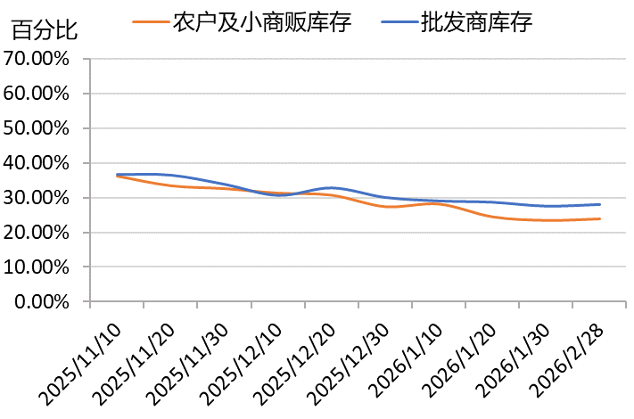 本期调研显示,二月下旬花椒市场热度有所回落。新华指数监测的七大红花椒主产区花椒库存量总体不变,批发商库存和农户及小商贩库存分别为27.97%和23.81%,批发商库存、农户及小商贩库存相较上期均有所上升。与上期相比,市场走货速度、市场交易活跃度回落。抽样调查结果显示,受节日因素影响,当前部分企业仍处于休假状态,在一定程度上影响了近期花椒市场的热度。不过,随着部分企业陆续复工,市场热度后续有望回升。建议各企业批发商在关注库存风险的同时兼顾价格变化趋势,及时调整售价。
