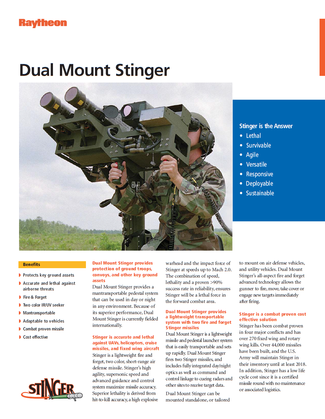 台军野战防空系统除了陆军与海军陆战队的AN/TWQ-1“复仇者”防空系统与已退役的M48“小檞树”防空系统外,海军陆战队也配备过基于HMMWV“悍马”高机动轮式车辆的双联装毒刺(DMS)导弹系统,作为可机动的伴随防空掩护力量。