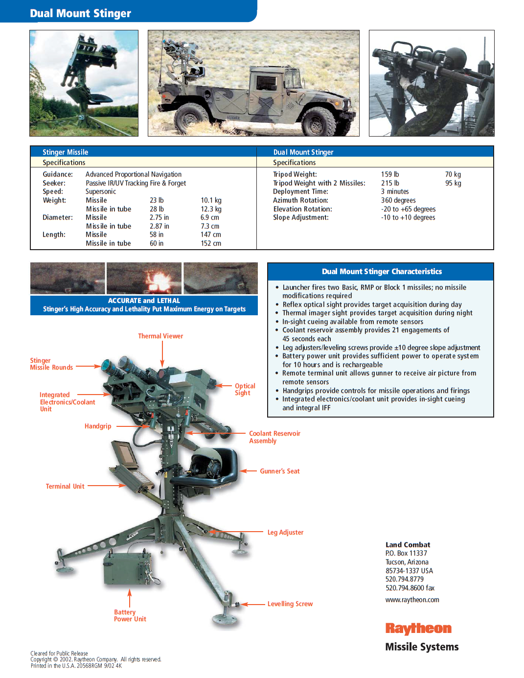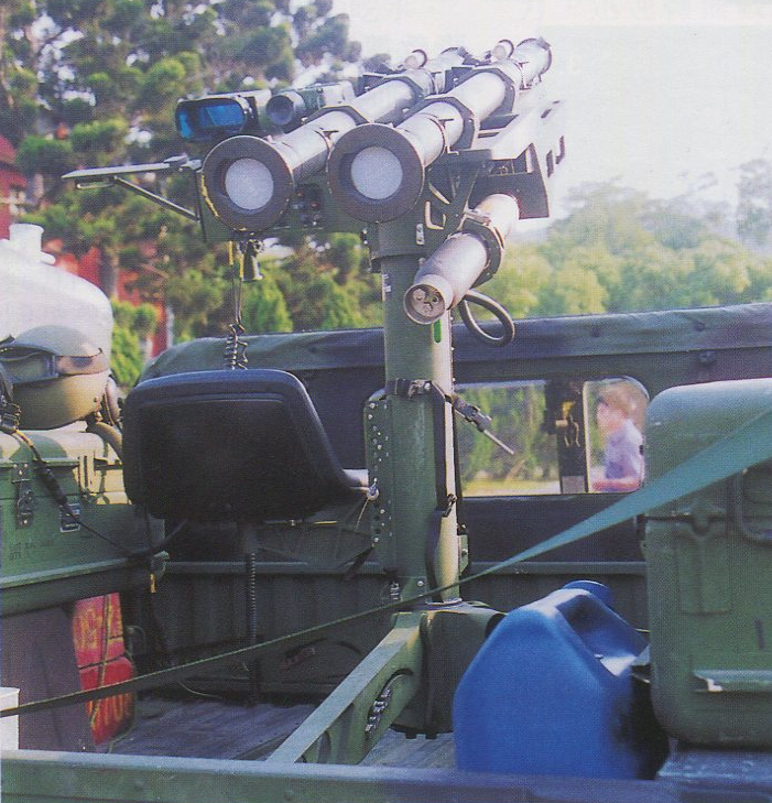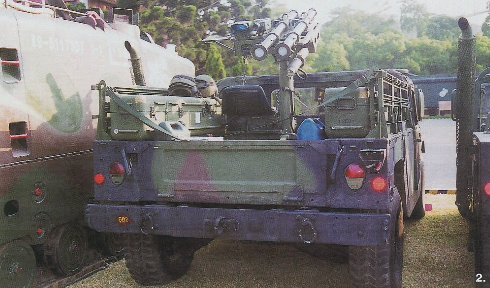 台军过去曾长期只配备固定三脚架的‘双联装毒刺’(DMS)防空导弹系统,而更高一级的“复仇者”却不跟随野战部队机动,因此对于部队伴随防空力量方面长期缺位(而近几年台军陆军才成功采购引进了肩扛式的便携毒刺系统)。海军陆战队相比陆军则较为特殊,配备了基于悍马的毒刺DMS系统。毒刺DMS可发射两枚毒刺导弹,反射式光学瞄准镜可在白天进行目标捕获,热成像瞄准镜可在夜间进行目标捕获,且同样可接收来自引导雷达的指示进行瞄准打击。