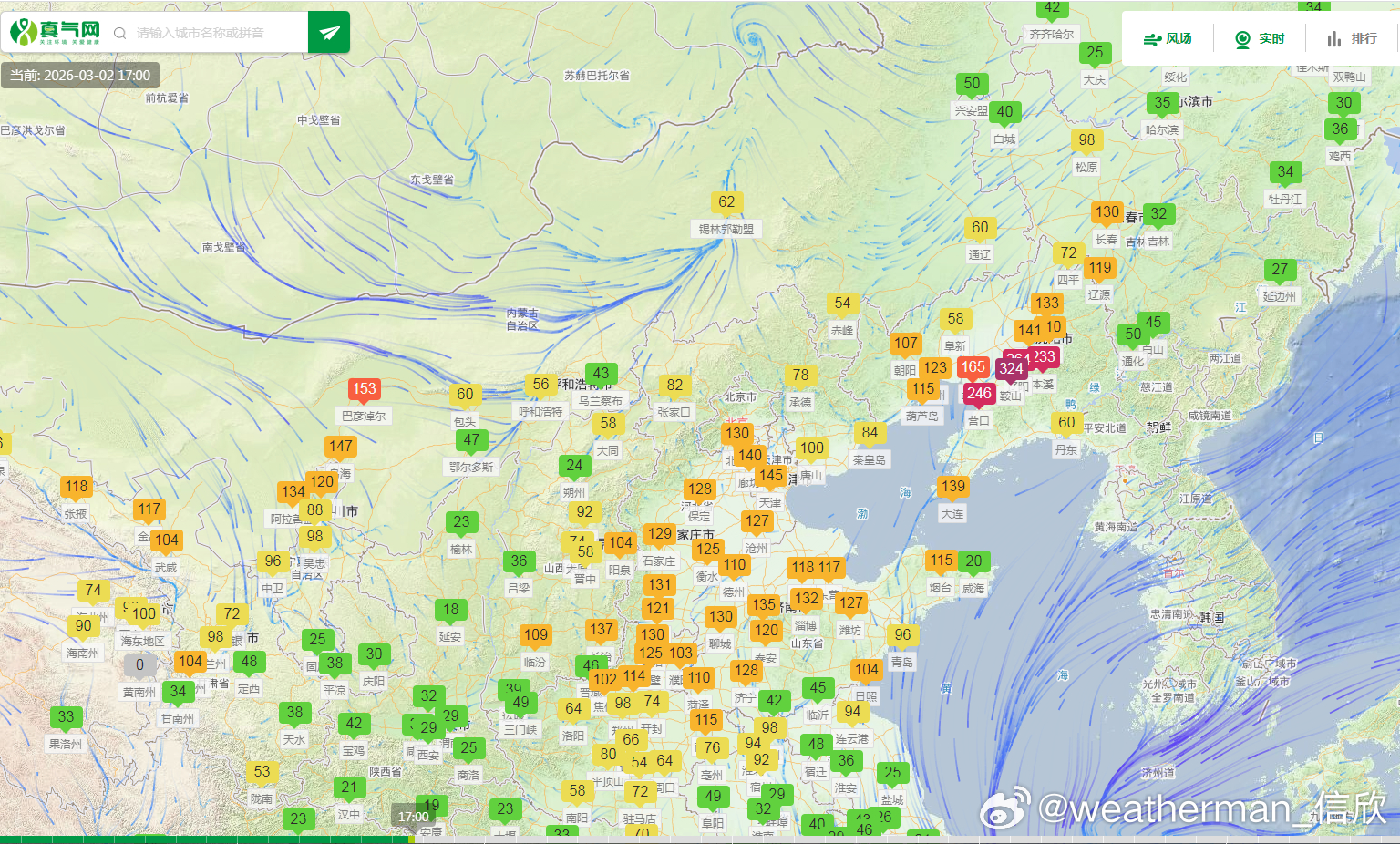【霾和沙尘】今天在辽宁一带的污染持续,对应有霾。今晚到明天霾还会维持,后天有望结束。从下午的卫星监测看,在内蒙古西部和新疆塔里木盆地东部,吹起一些沙尘。内蒙古的沙尘随着西风向东传输,新疆的沙尘随着冷空气东风回流向盆地内部传输。