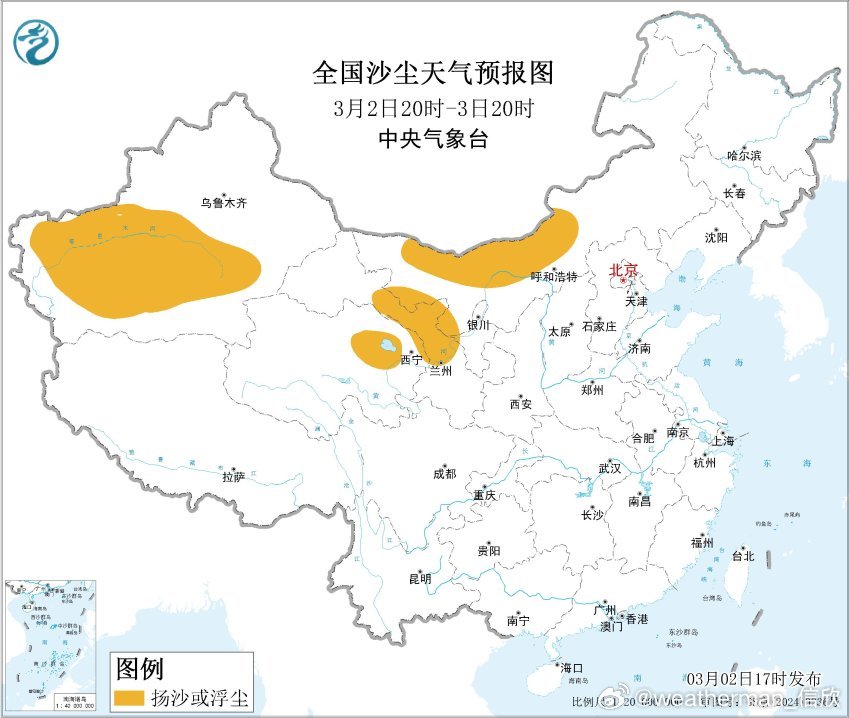 预计3月2日夜间至3日,新疆南部、内蒙古中西部、甘肃中部等地的部分地区将有扬沙或浮尘天气。3月4日至5日,新疆东部和南部、内蒙古西部、青海北部、甘肃西部、宁夏中北部、陕西北部等地的部分地区将有扬沙或浮尘天气。