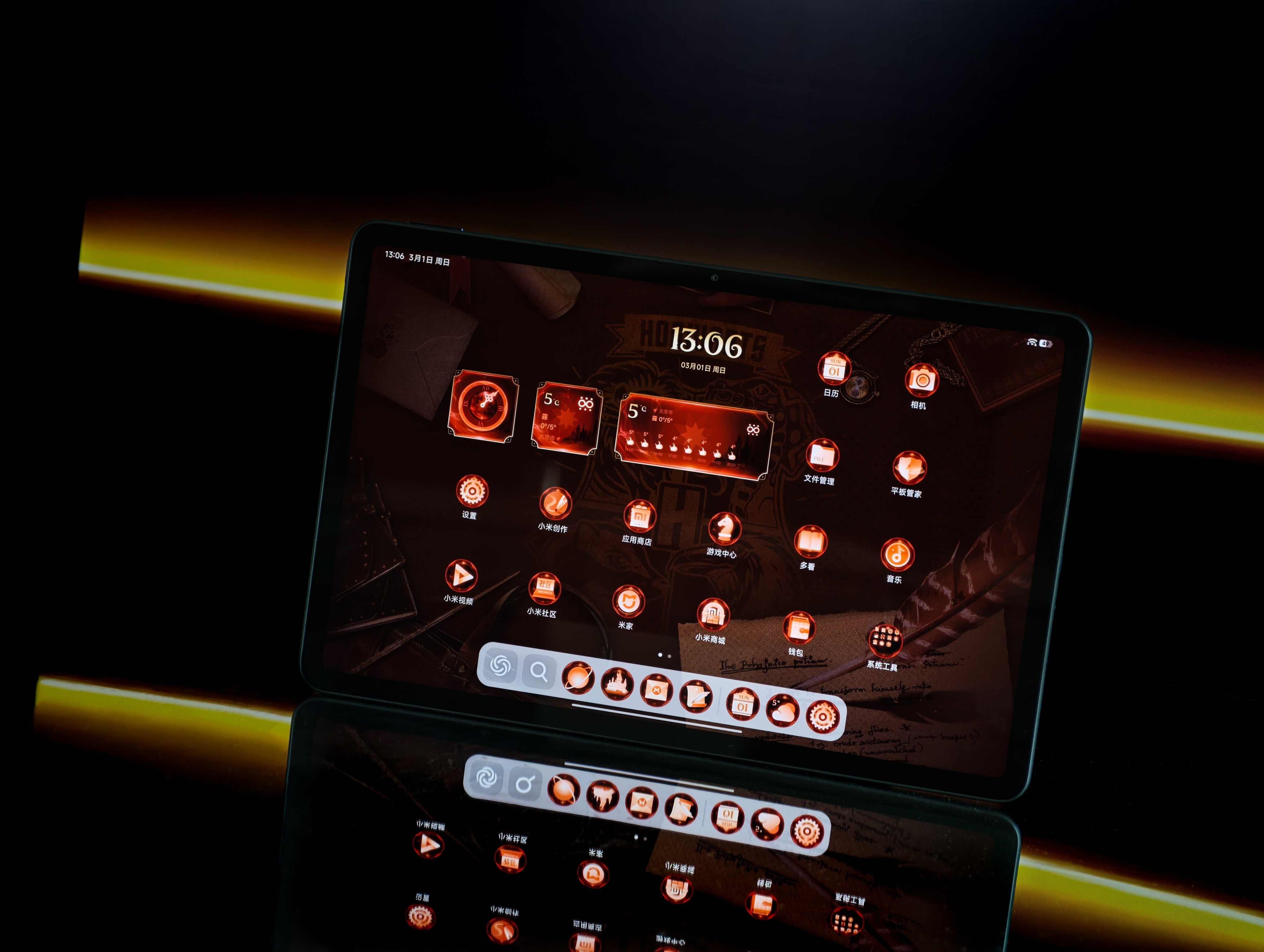 搞了一台REDMI&哈利波特联名平板,魔法返校主题礼盒,细节做得非常到位,皮质风格背包,三折平板保护壳,手写笔套上保护套就是一支魔杖,Pad 2 Pro哈利波特版做了高功率激光镭射校徽+陶瓷喷砂工艺,质感优于普通版。