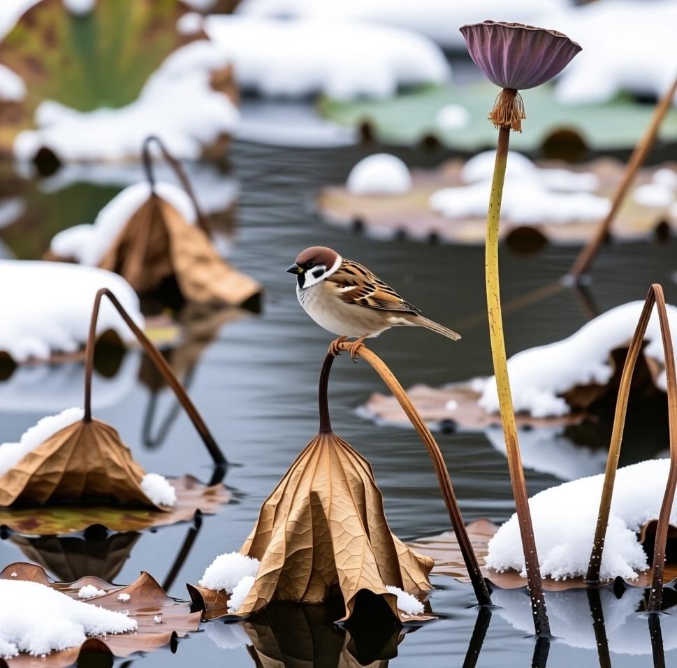 山东滨州十里荷塘雪景、中海“航母”雪景、小区腊梅雪景: