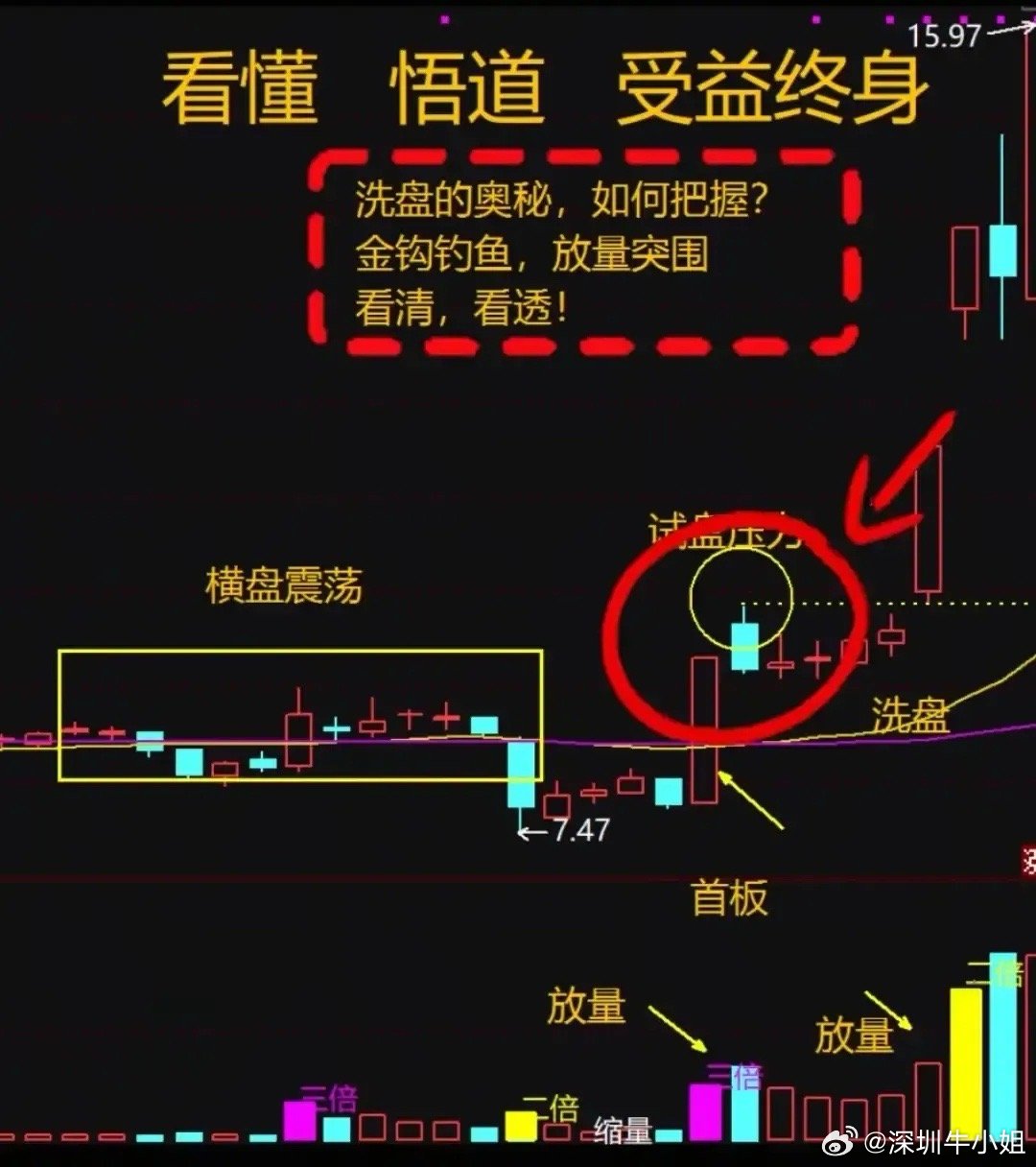 1. 横盘蓄势:股价窄幅震荡、量能低迷,偶有倍量(主力试买吸筹)。2. 试盘测压:冲高回落长上影线(试上方抛压,重则洗盘,轻则缩短周期)。3. 洗盘清筹:缩量回调(量能较试盘明显萎缩,阴多阳少幅度小,清浮筹)。4. 放量突围:放量大阳线破试盘高点(量能翻倍,主升浪启动信号)。关键盯三点:横盘倍量、试盘长上影、洗盘后放量突破;若突破后回落破支撑需止损。(注:仅经验分享,不构成投资建议,股市有风险。)