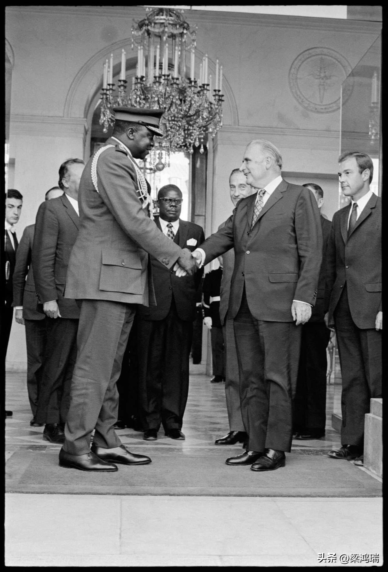 1971年9月16日,乌干达总统伊迪·阿明·达达(Idi Amin Dada)将军对法国进行了为期两天的正式访问。这次访问是阿明在1971年1月发动军事政变夺取政权后,早期出访欧洲的行程之一。 巴黎会晤: 9月16日,阿明在巴黎爱丽舍宫与时任法国总统乔治·蓬皮杜(Georges Pompidou)举行了会谈。在与法国领导人协商后,阿明还计划前往法国南部的图卢兹(Toulouse)参观工业和航空设施。 主要会谈内容 技术合作: 双方讨论的重点之一是落实法国与乌干达在1970年签署的一项技术合作协议。 人才派遣: 在与蓬皮杜进行了一个小时的交谈后,阿明告诉记者,法国已同意向乌干达派遣技术人员。 地区局势: 阿明还谈到了当时乌干达与坦桑尼亚的边界冲突,表示他渴望和平。 访问背景与相关声明 国内政局: 当时被阿明推翻的前总统米尔顿·奥博特(Milton Obote)正流亡在坦桑尼亚。阿明在访法期间警告称,如果奥博特返回坎帕拉,可能面临腐败指控。 外交姿态: 此时处于阿明统治的初期(第一年),他当时还获得过英国和以色列的关键军事与财政支持。