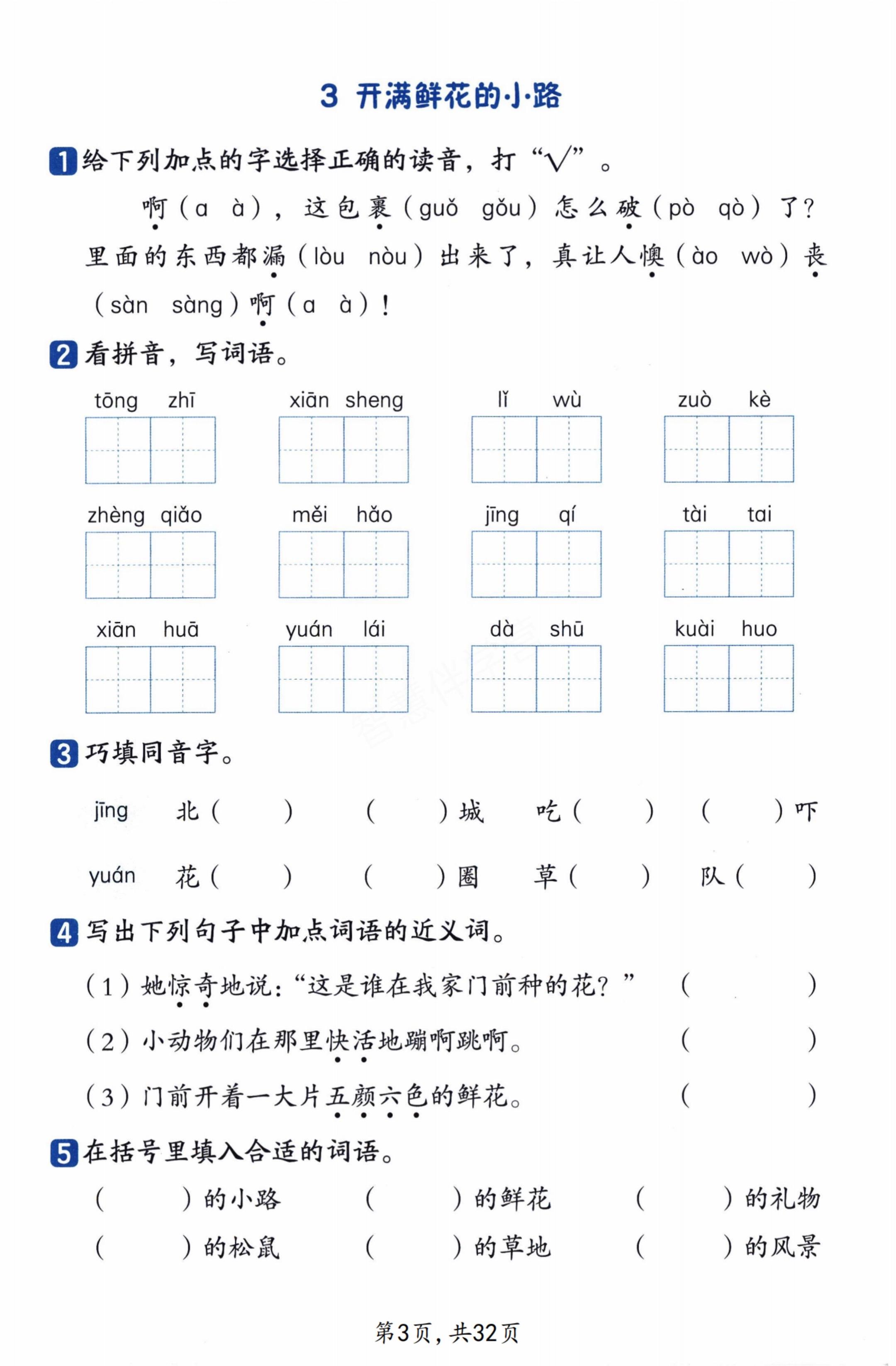 小学二年级语文下册第一单元知识练习附答案。 ,八方文印店。有需要...
