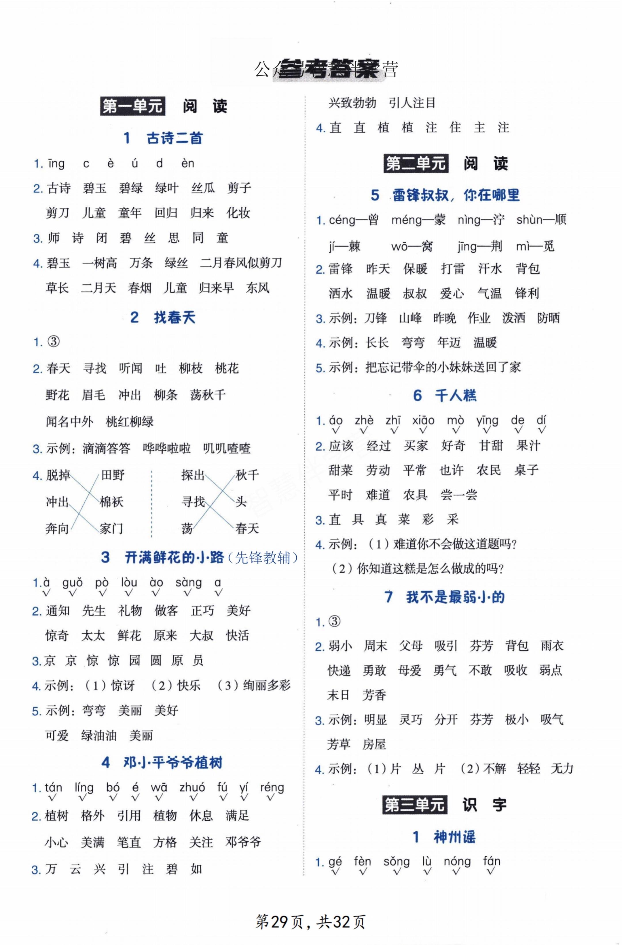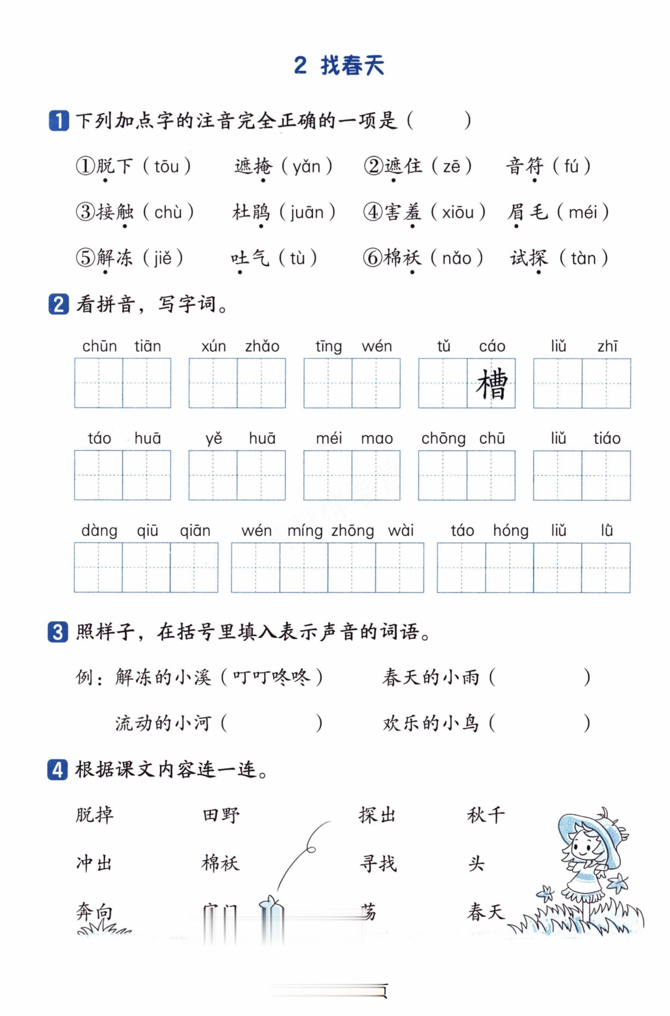 小学二年级语文下册第一单元知识练习附答案。