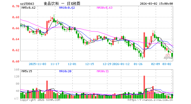 3月2日,食品饮料ETF(159843)跌1.46%,成交额1416.26万元。当日份额增加450.00万份,最新份额为6.82亿份,近20个交易日份额减少5100.00万份。最新资产净值计算值为4.14亿元。