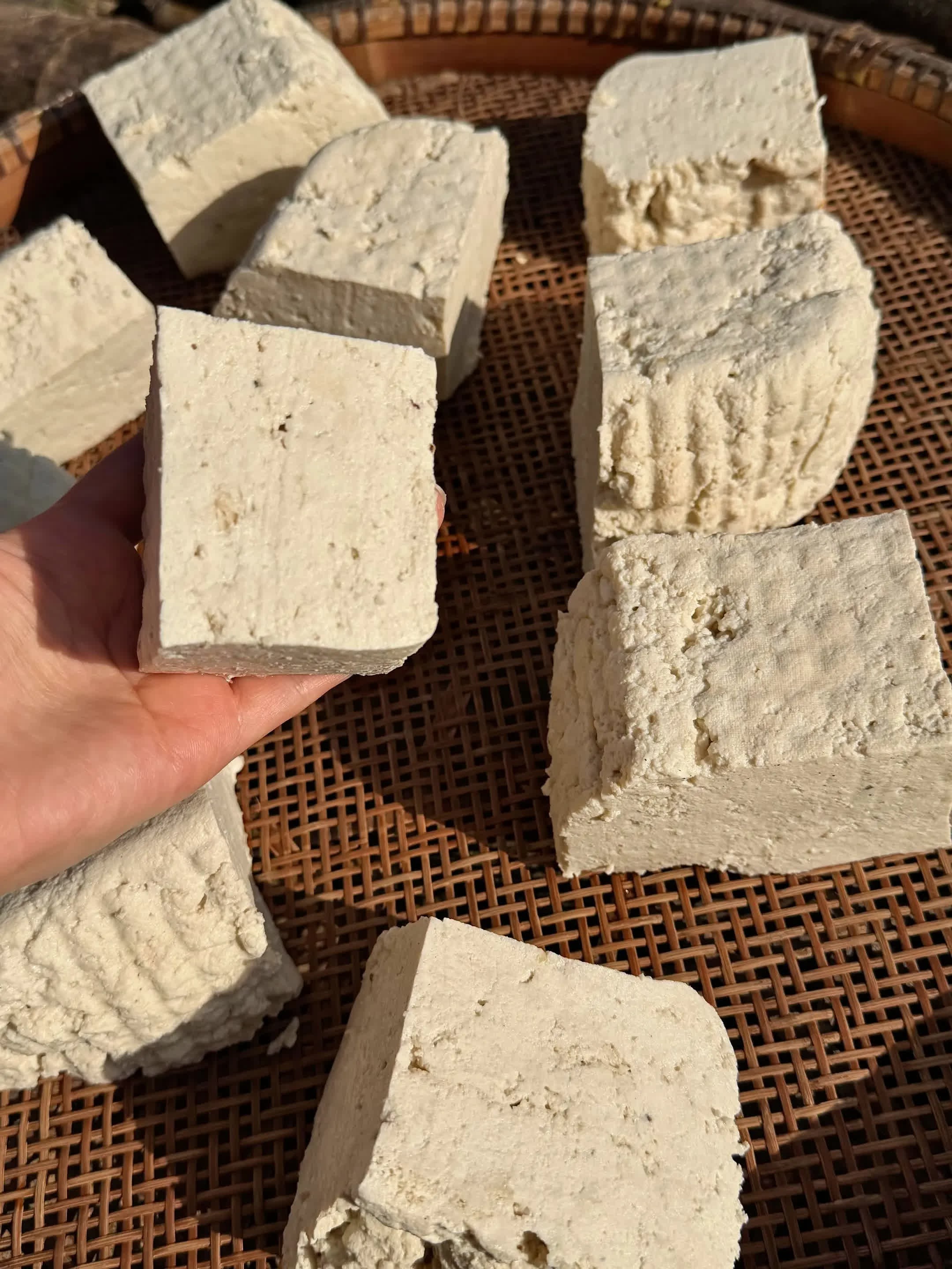 自制庐山豆腐。纯手工自制美食创作者中心.过年都会自己打豆腐,种的黄豆提前浸泡,用机器磨成豆浆再倒入土灶里面煮。全程豆香浓郁,已经忍不住想喝豆浆了,等煮沸舀一些在放了酱油的碗里,咸豆浆就做成了。无敌浓郁鲜香,一下子喝完一碗。 剩下就开始点豆腐,压豆腐。静待豆腐成型,迫不及待煎起来尝尝,手工豆腐的味道跟买的根本比不了,太香太地道了