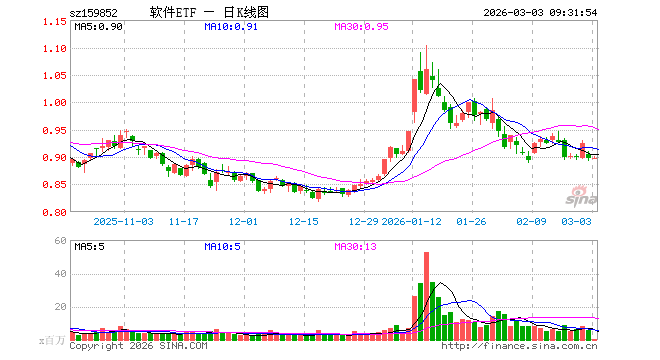 3月3日,软件ETF(159852)开盘涨0.00%,报0.897元。软件ETF(159852)重仓股方面,科大讯飞开盘涨0.50%,金山办公涨0.03%,同花顺涨0.19%,指南针涨0.01%,恒生电子跌0.03%,拓维信息涨0.95%,润和软件涨0.20%,三六零涨0.50%,软通动力跌0.08%。