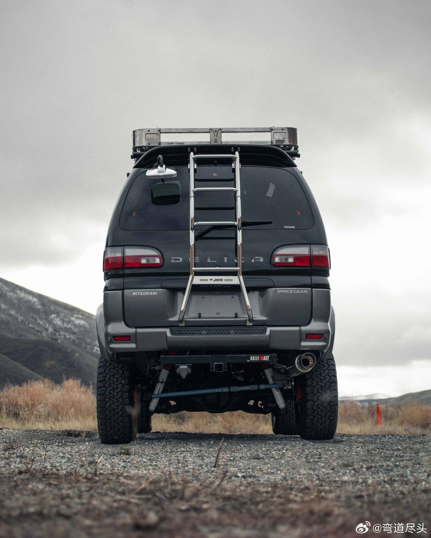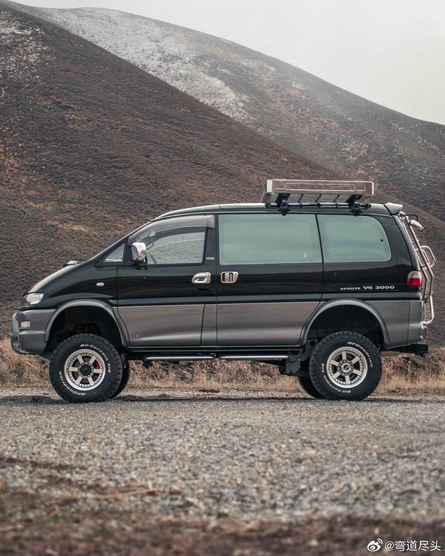 vanlife 1997 Delica L400 Space Gear Super Exceed.越野面包车的强悍姿态,天生为探险而生。车身采用黑灰双色涂装,搭配6英寸升高底盘与31英寸百路驰Baja Champion全地形轮胎。动力搭载3.0L 6G72 V6汽油发动机,配备高低速四驱切换及中央差速器锁,能轻松驰骋在无路之地。内饰为Super Exceed高配版本,体验拉满:第二排360°旋转独立 captain 座椅,7座布局,支持标准、派对、床车、载货四种灵活模式。深色车窗、遮阳帘,搭配标志性水晶天窗,通透又私密。前排双安全气囊与ABS系统,带来周全防护。jdmvanlife4x4delicajdmlifestyle元宵节