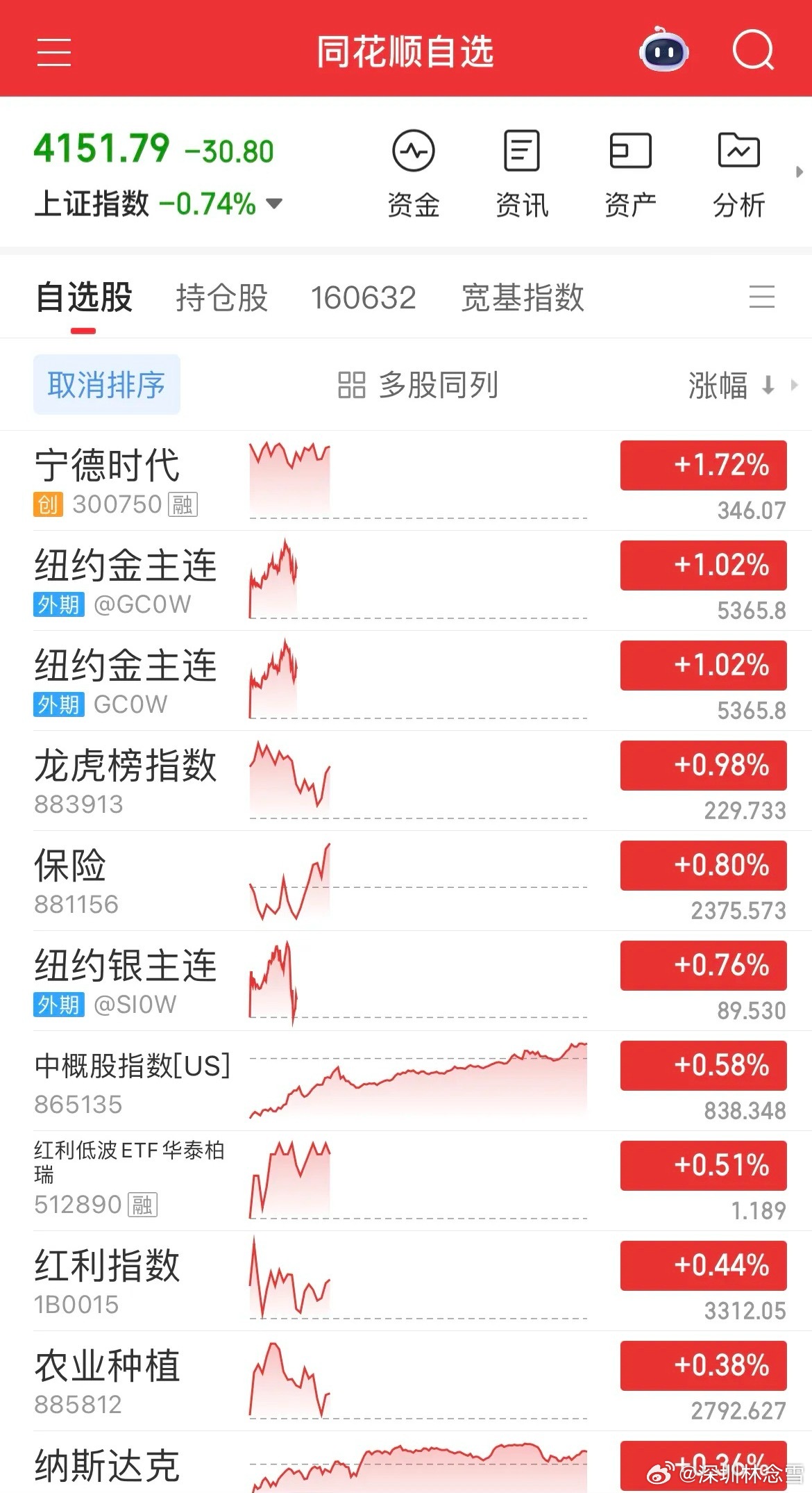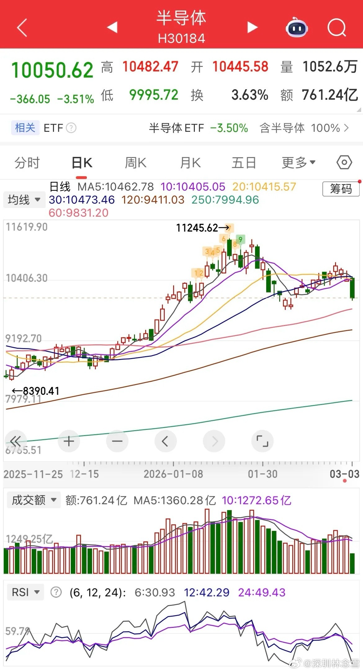 今日A股受外围局势升级影响大幅调整,两市呈现指数分化、个股普跌格局。沪指盘中创十年新高后翻绿,创业板由涨转跌,近4000家个股下行;黄金、军工、有色、稀土等板块大幅回调,半导体、商业航天、科创类指数跌幅显著,仅能源油气板块逆势走强。