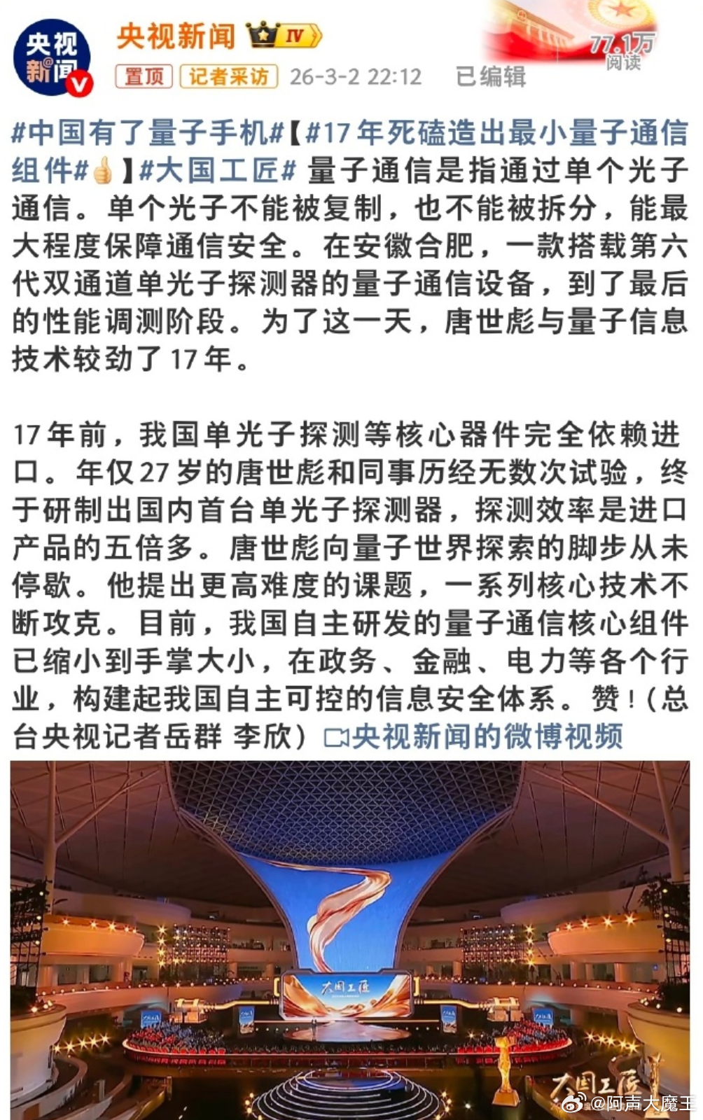 用户10xxx91 1 2026-03-03 15:44 @千问,量子手机发布量产对我有什么影响 千问 回复 03-03 15:44 目前量子手机主要在政务、金融等高安全领域试商用。对普通用户而言,直接影响是未来可能通过更换量子SIM卡或APP,以较低成本获得军工级加密通信,保护支付和隐私安全。根据央视等报道,相关民用服务预计在2026年底到2027年逐步普及。
