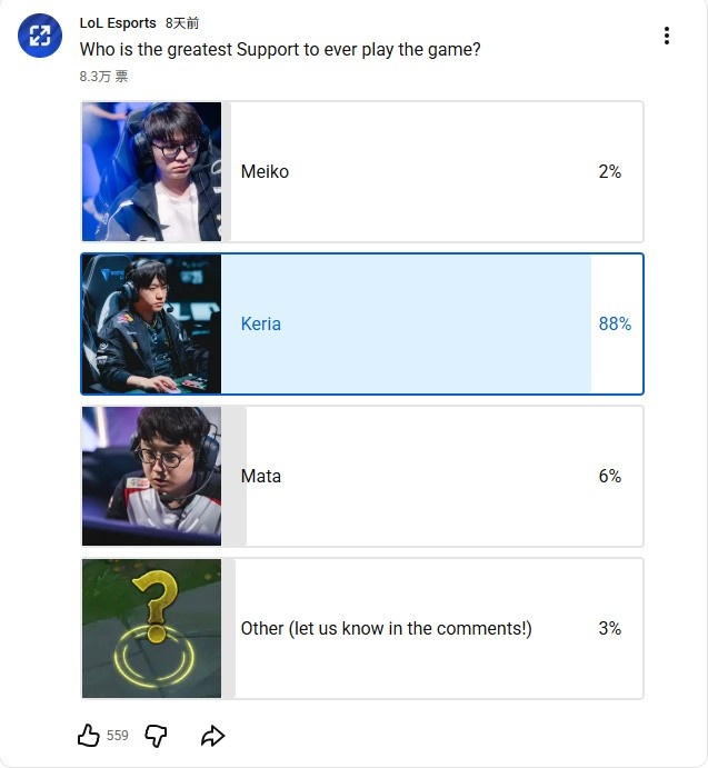 我觉得Mata是第一个向世界证明辅助这个位置到底能有多强影响力的选手。但Keria每一年都在证明:他不断超越过去的自己,也超越身边所有其他辅助。我不确定是不是现在,但我认为多年以后回头看,人们会把Keria视作英雄联盟史上最伟大的辅助选手。