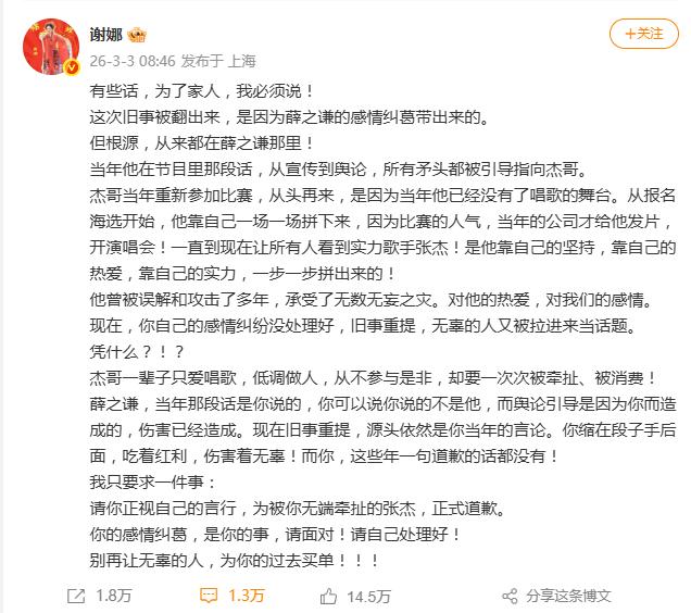 谢娜是不是有点玻璃心啊 而且这都过去多久了 怎么还旧事重提 喊话薛之谦为他之前的不当言论向张杰道歉 我印象里,当年薛之谦在吐槽大会上就说过“我一没提前解约,二不偷不抢,三没找有钱女友发片,四没找比我红的女友辅佐我,红得堂堂正正。” 人家薛之谦也没有点名道姓说这人就是张杰,再说了娱乐圈男方靠着女方名气成功的还少吗?比如秦昊和伊能静夫妻俩,人家秦昊一开始资源和人脉都不如伊能静,他的很多电影都是伊能静帮忙拉来的,不过人家也确实自身很努力,也有了今日的地位。 但是,你看人家秦昊就没觉得有啥,他也承认伊能静确实比自己优秀啊,该说伊能静一直就是他幼时的偶像。 但是,到谢娜这里,薛之谦在节目上的玩笑话,她就认真了,再说他们不还是好朋友吗?这种话,应该两人方面说吧,而且现在薛之谦的女友正在爆料薛的丑闻,而这些丑闻的真相到底是怎样,我们也不得而知。 在这样的敏感点,再去说这些,作为朋友,是不是不合时宜? 大家觉得谢娜喊话薛之谦道歉合适吗? 谢娜