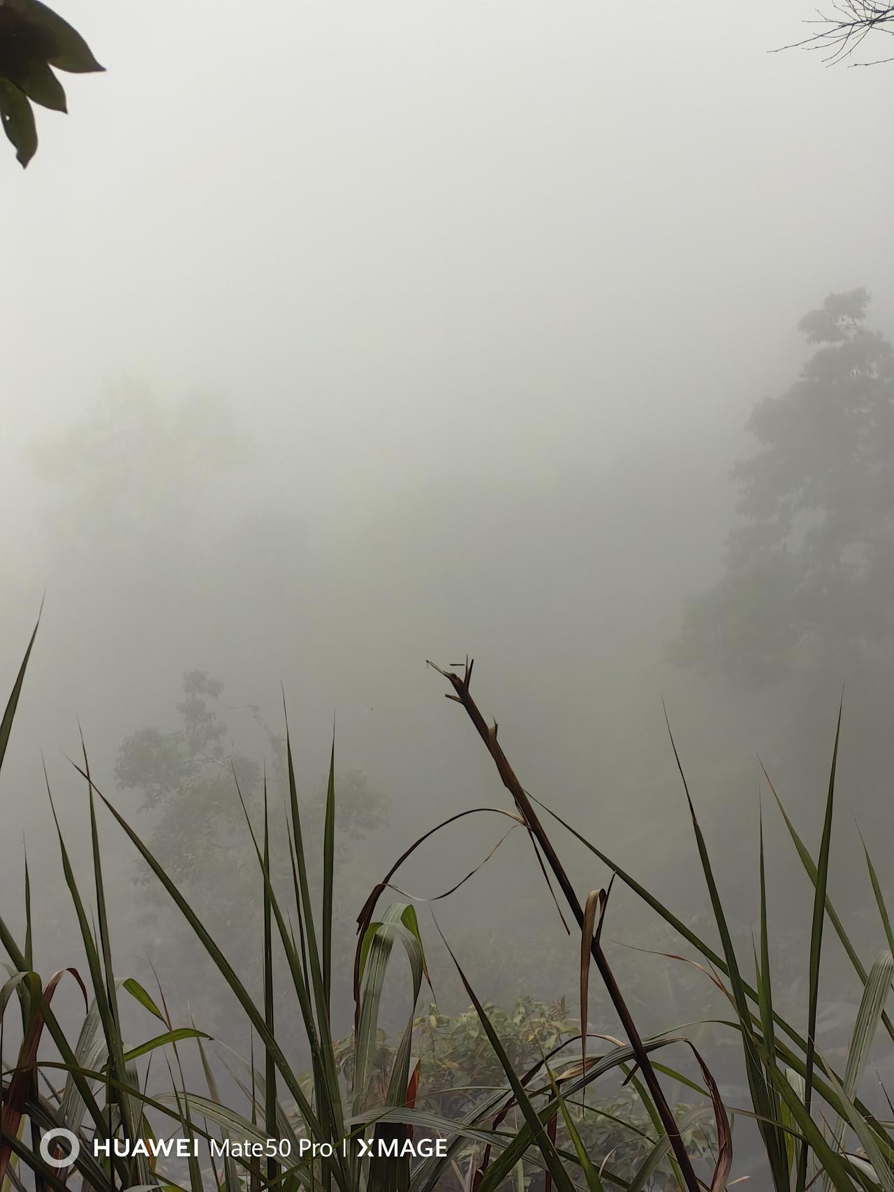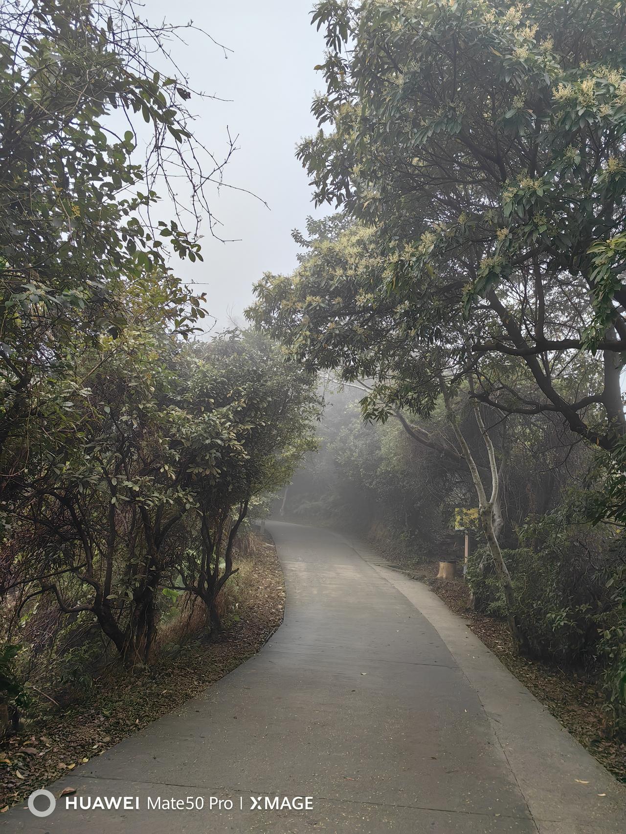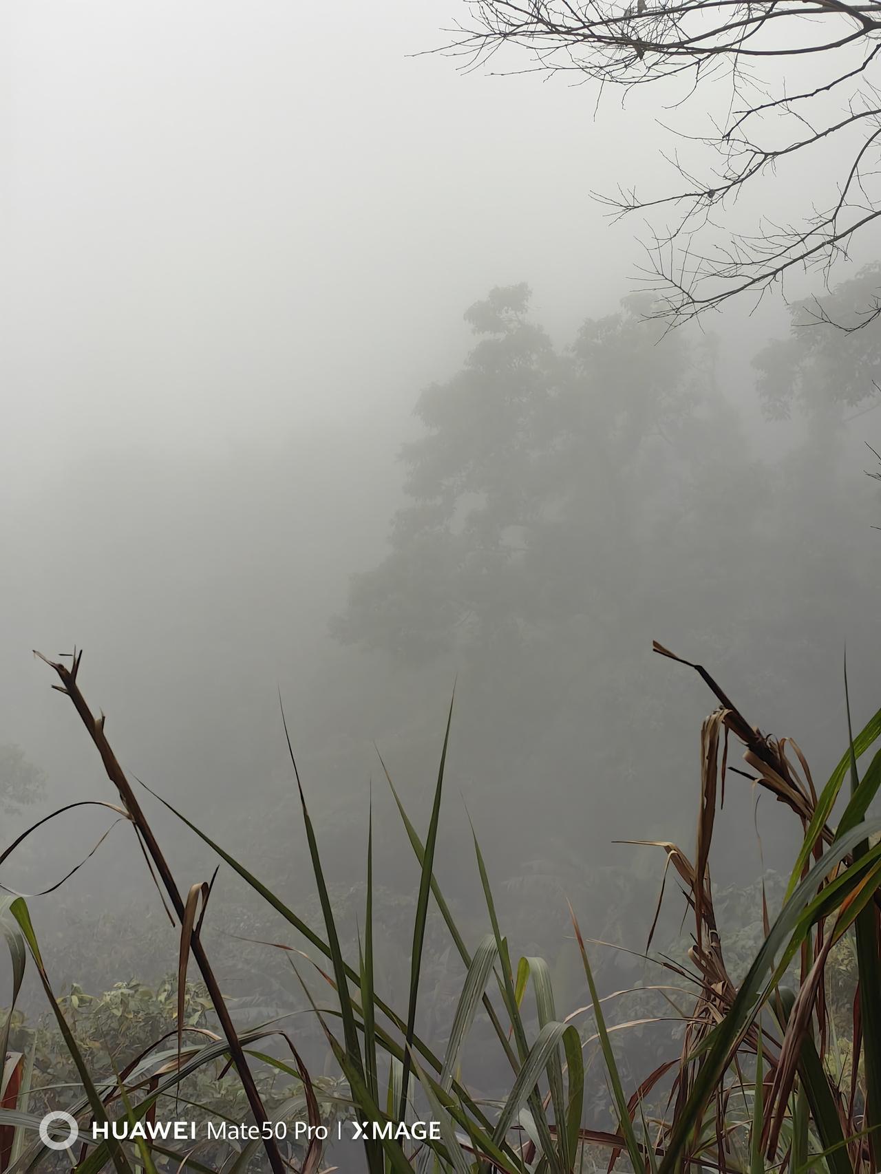 《梧桐雾中行》:雾笼梧桐万径封,杖敲云影辨行踪。不知山向何方去,但听松声过顶峰。