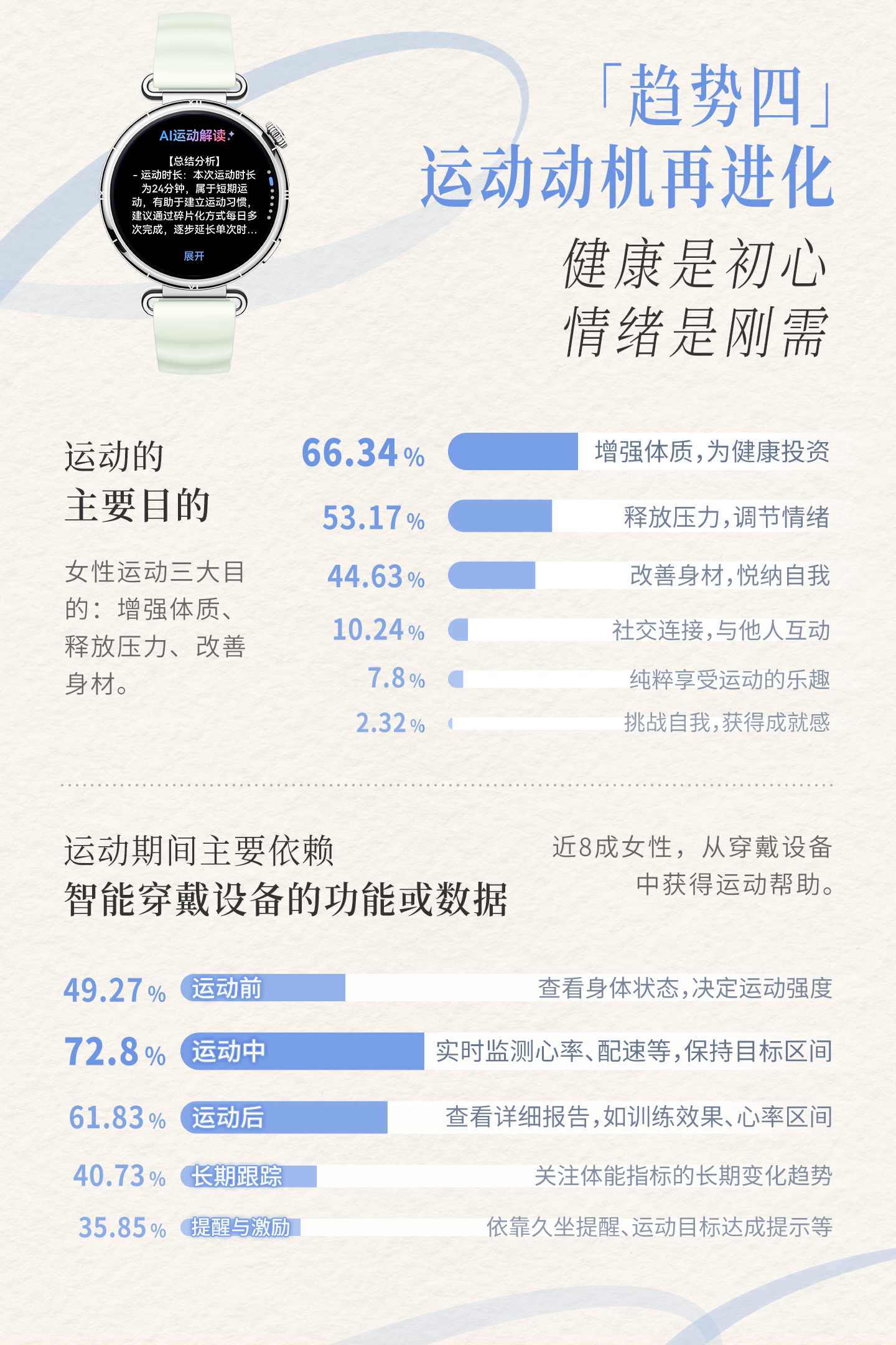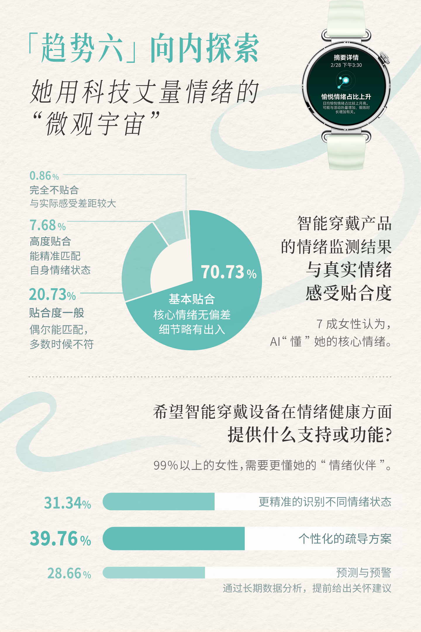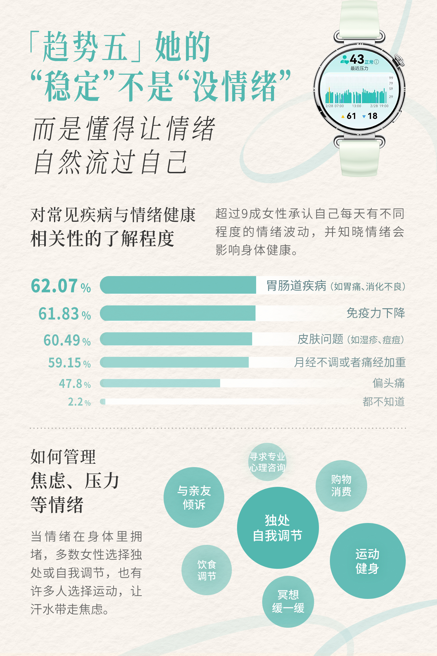 不足5%的女性能在晚10点前入睡目前,多数健康监测停留在“记录”层面:记录了你睡了多久,记录了你的经期日期。但白皮书揭示的深层需求是“预测”和“解释”。为什么超6成女性对卵巢健康处于被动状态?因为她们缺乏前瞻性的洞察。现在手表可能在你经期来临前数天,就预测到此次伴随的困倦感或情绪低落可能会更明显,并建议你提前调整日程,是健康科技的关键飞跃。