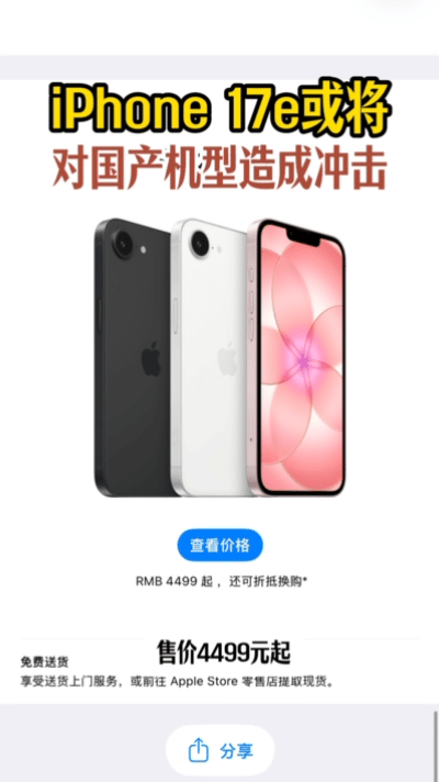 狠狠心动了!看完iPhone 17e价格我惊了!国补后3999起就能拿下,不得不说这价格真的太戳中本果粉的心了!iPhone17e或将对国产机型造成冲击 最近想换新机的朋友们真的不要错过这个好机会!苹果新机已触碰到三千价位