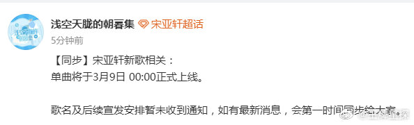 宋亚轩单曲3月9日上线宋亚轩新歌上线预告宋亚轩新歌上线预告🈶,3月9日上线,3