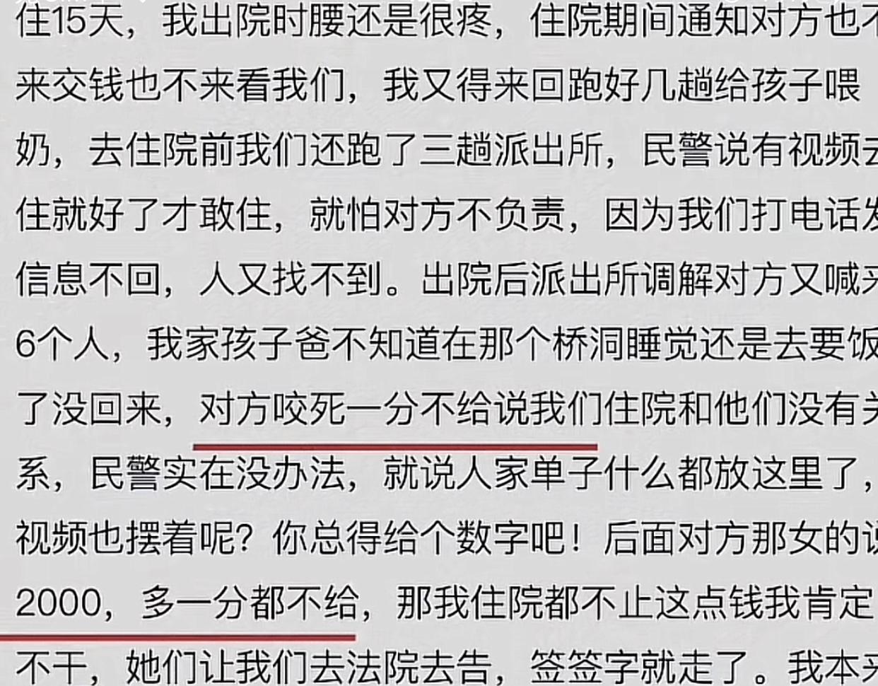 自己的孩子是宝贝,别人的孩子就不是了吗? 云南某商场,一宝妈正常抱着自己的孩子乘坐扶梯下去。此时后面跟着一位同样带着孩子的黑衣女子站在扶梯口,然后把扭扭车放上电梯并直接松手。 没有阻力的扭扭车顺着扶梯而下,肉眼可见的加速起来。先是绕过了中间的路人,然后直直的冲向前面那名抱着孩子的宝妈,导致她没站稳直接倒在扭扭车上,宝妈怀里的孩子也因此摔在地上,幸好后面的路人及时抱起孩子。 而那名黑衣女子放扭扭车之前也没有任何提醒,就这样站着一动不动的看着小车滑下去,事后也是全程冷漠的看着,等到前面的人都下了扶梯后,她才小心的护着自己的孩子下去,把自己的孩子护的稳稳当当。 而宝妈的孩子当时才5个月大,经过医生检查后,结果是闭合性颅脑损伤,并且宝妈的腰也受伤了。而宝妈大龄单亲妈妈,不仅要带孩子,还要照顾年迈的父母,生活压力本就大,如今自己现在腰又受伤了,就更加雪上加霜了。 而黑衣女子不仅不主动负责,还一口咬定这事与自己无关,甚至还喊了八九个人去医院围着那名宝妈,说一分钱也不会给,最后拉扯了半天对方才只肯出2000块,还说多一分都不给,这点钱连住院费都不够。 而该事件发生于2025年9月29日,一直到现在还没得到解决,所以现在这位宝妈决定起诉对方,只为自己和几个月大的宝宝讨一个公道。