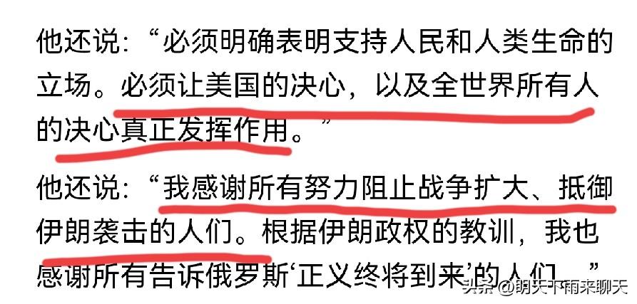 泽连斯基对于伊朗的处境倒是有一番高见。 谴责伊朗政权,支持美国决心。 伊朗应该是什么样的政权,走什么样的道路,这是内政,外人作不了主,也不应该作主。美、以主动攻击伊朗,就是侵略,这在国际法及国际道义上,都处于劣势,目前,公开支持美、以的国家似乎没有,除了泽连斯基。 斯基真没必要此时就此事高谈阔论,力挺美国,这让其他国家怎么看待乌克兰几年来的处境?