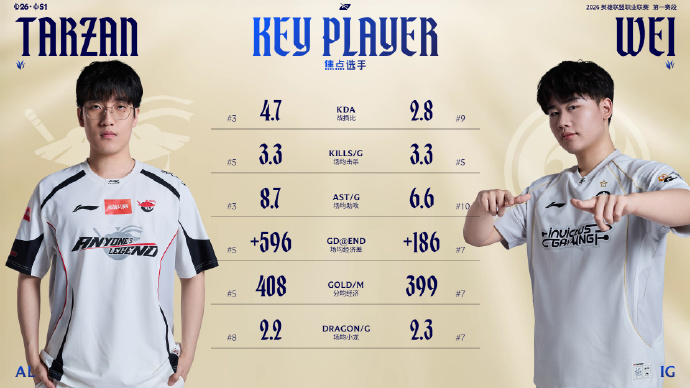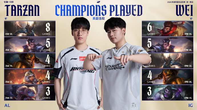 LPL官方发布IG对阵AL赛前打野数据对比,Tarzan全面占优