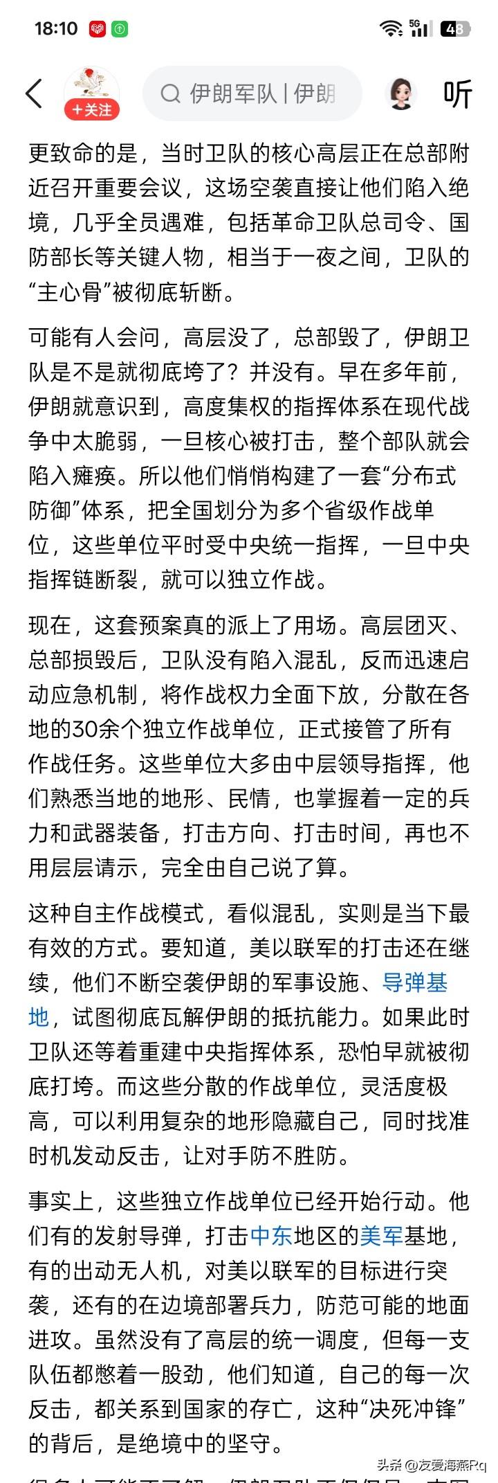 更可能完全相反? 立场鲜明,观点明确。然而,未必就是真的。 没有上级的领导和指示,下级分散的作战单位,无论你如何提前划分作战方式和行动准则,但实际情况就是,首先没有任何统一的作战目的和目标,其次是没有可靠的、甚至是根本就没有情报的支持。 在现代战争中,没有任何情报支持,就等于瞎猫撞死耗子;没有统一的目标,差不多就是瞎胡闹。 这好像根本就不是认真的、深思熟虑的写文章,而是酒后不负责的说胡话。 如果真的如此,还要领导和上级做什么呢?