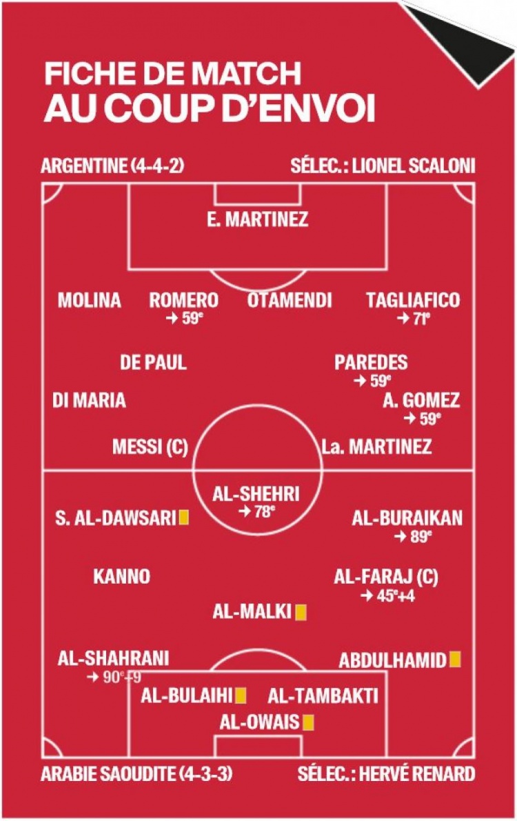 直播吧3月3日讯沙特在2022年卡塔尔世界杯的第一场比赛就2-1爆冷逆转击败阿根廷,终结对方连续36场不败纪录。近日沙特主帅勒纳尔在法媒《队报》上从战术层面回顾了这场比赛。