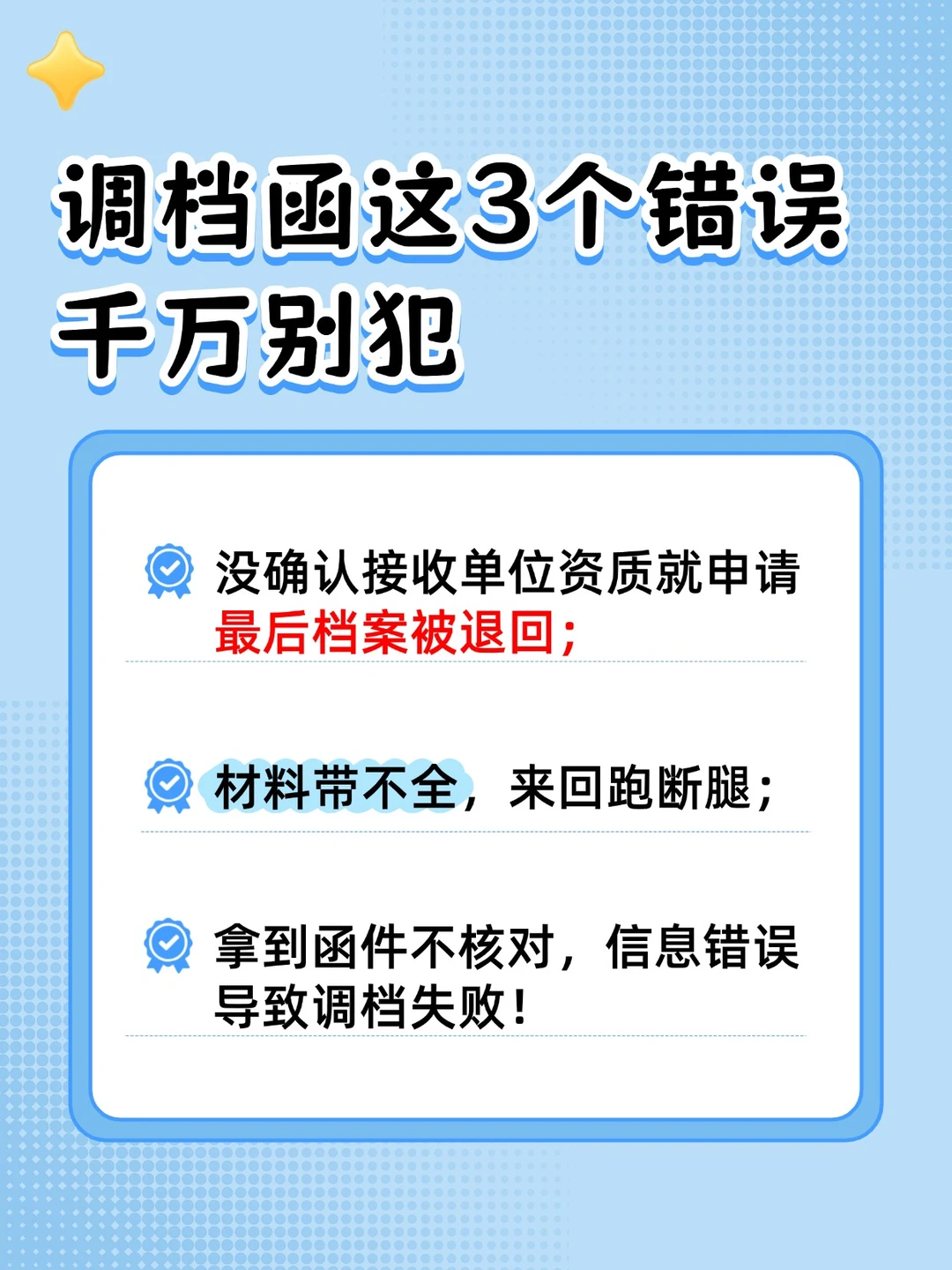 别再瞎跑冤枉路!很多人不知道调档函怎么开、要带啥材料,甚至拿到函件发现信息错了,白白耽误进度。避坑预警⚠️ 这3个错误千万别犯: