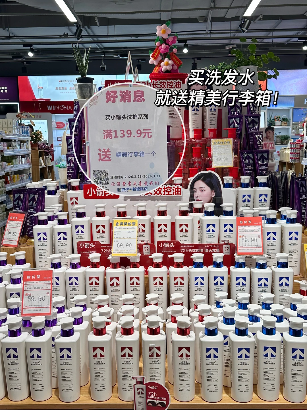 购小箭头洗发水/护发素满139.9元,送精美行李箱一个!