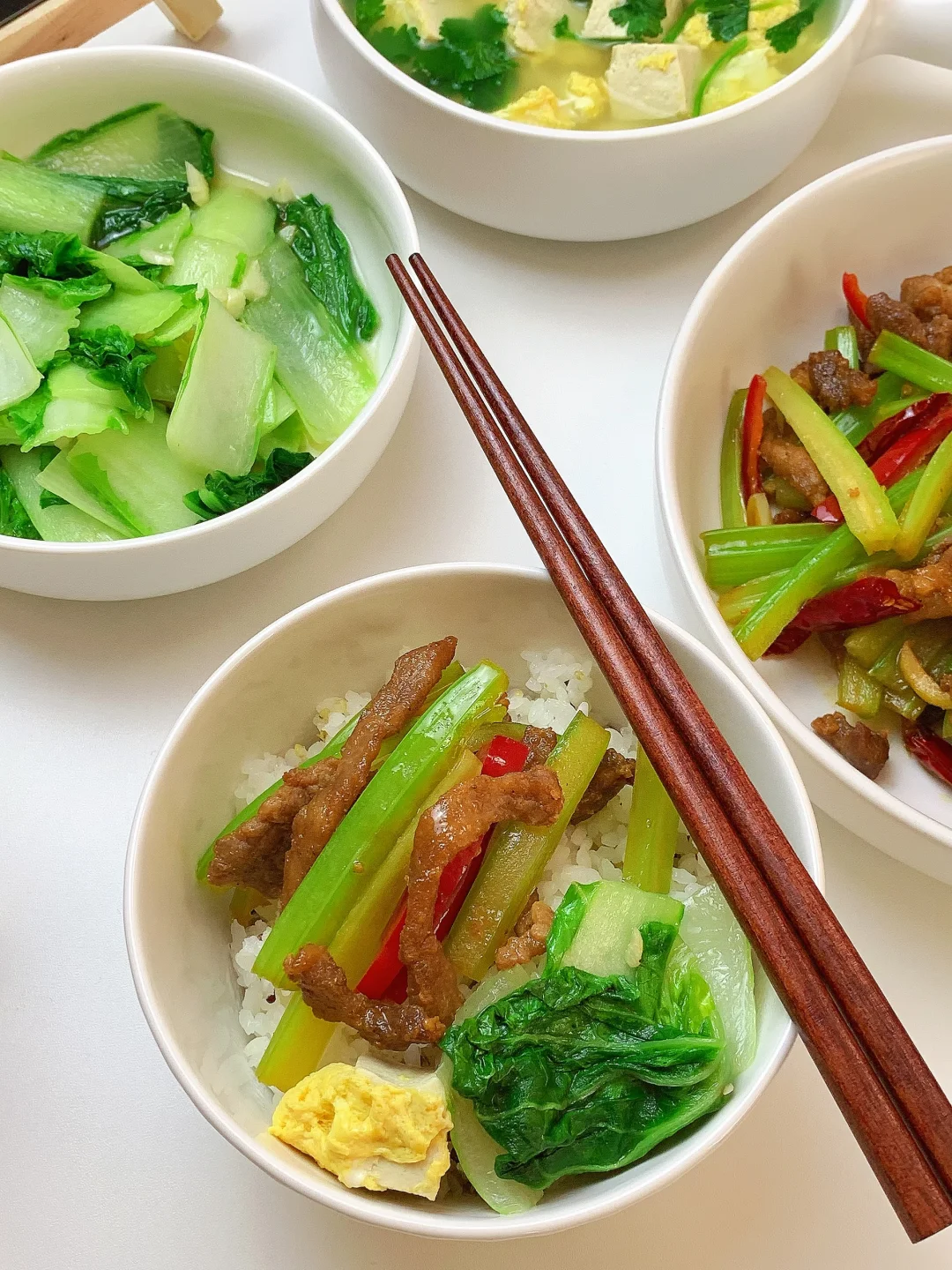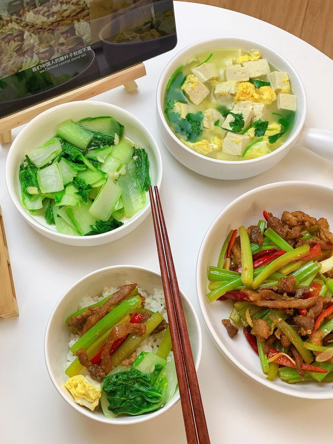鸡蛋 | 豆腐 | 里脊肉🥩 | 芹菜 | 彩椒🌶️ | 小白菜🥬
