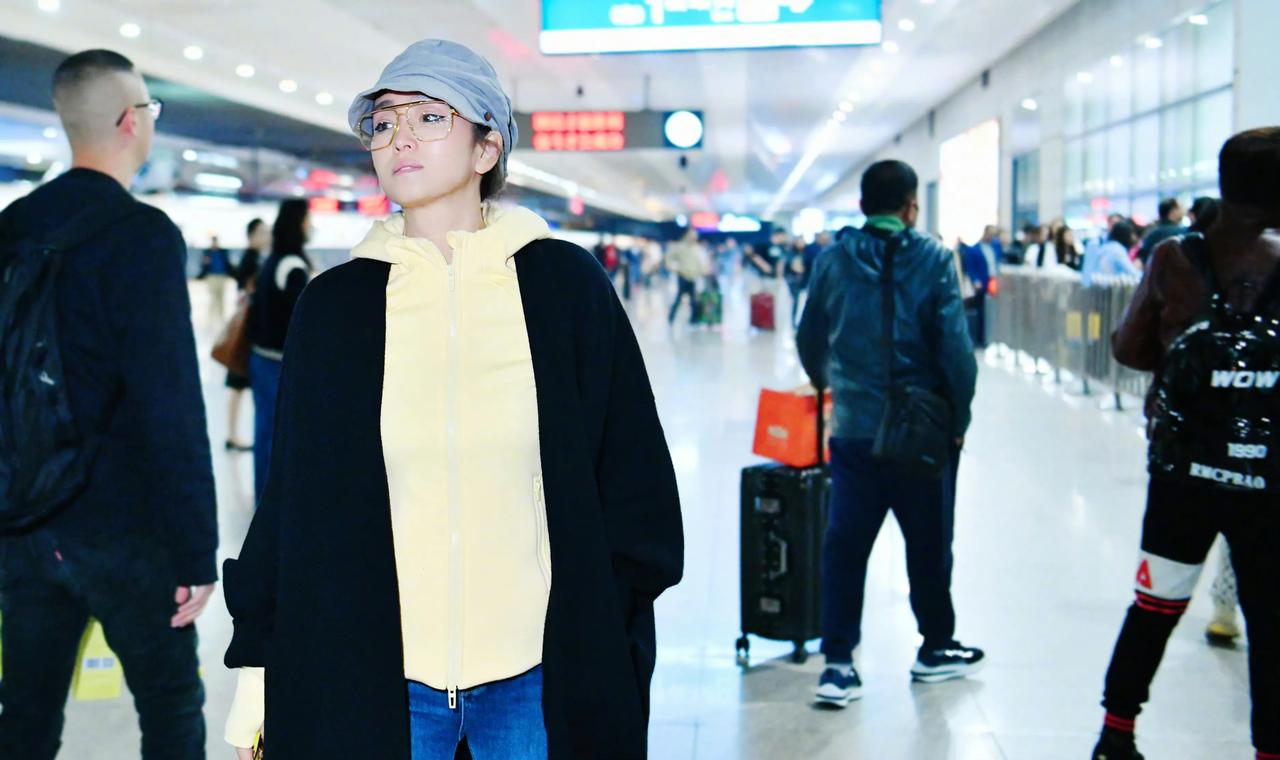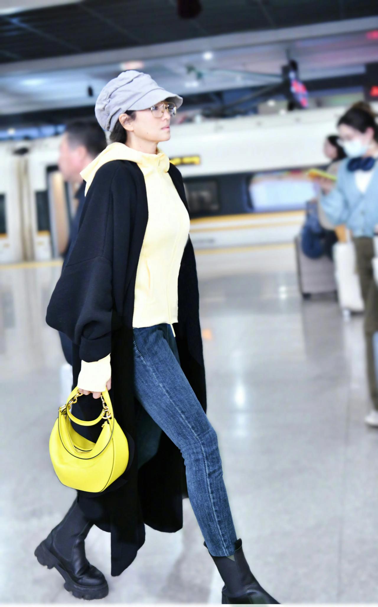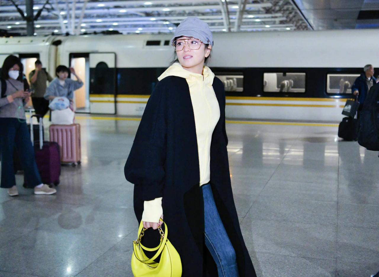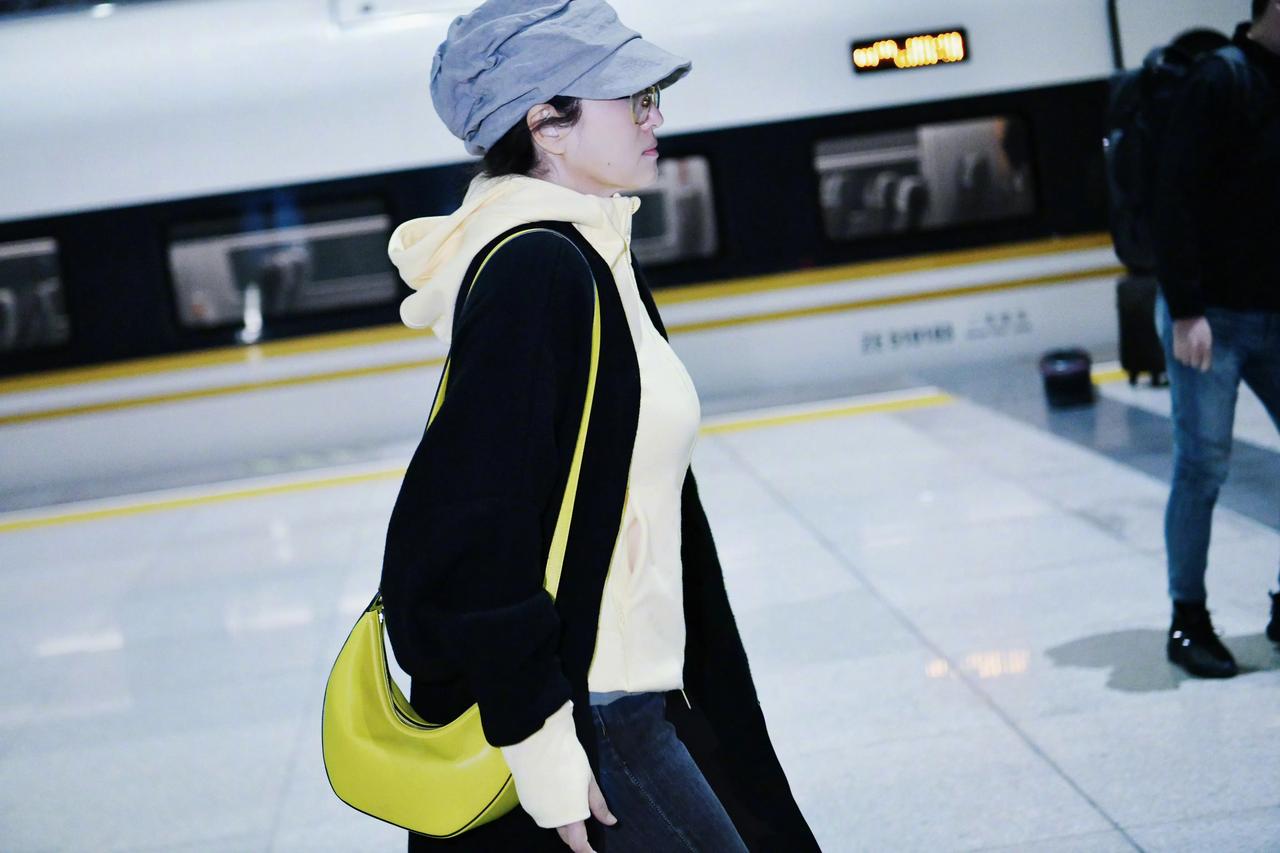 高铁站偶遇巩俐,本人好高啊,打扮得像少女一样,气质清新又矜贵。