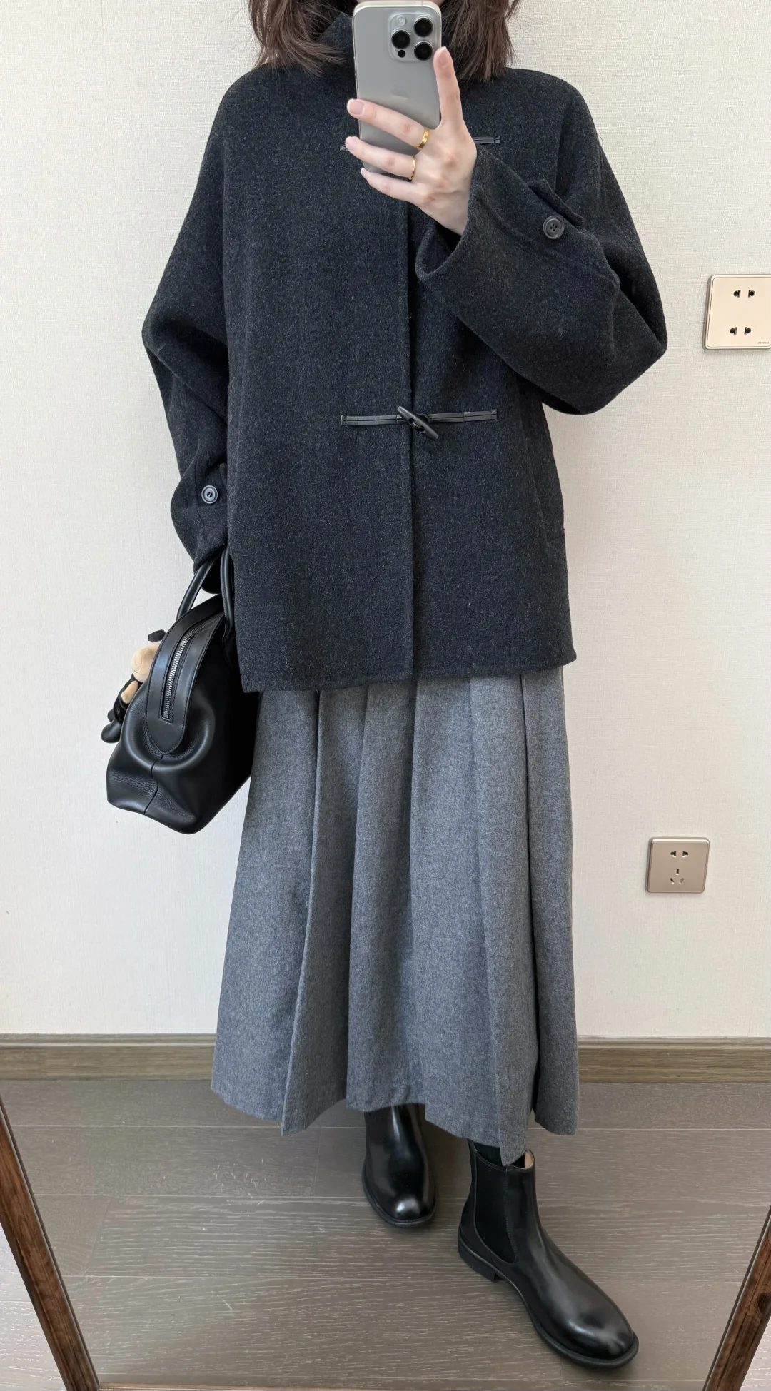 cleanfit简单出门 极简穿搭 通勤穿搭 牛角扣大衣 灰色大衣 大衣 羊毛大衣 毛呢外套 秋冬穿搭 大衣穿搭