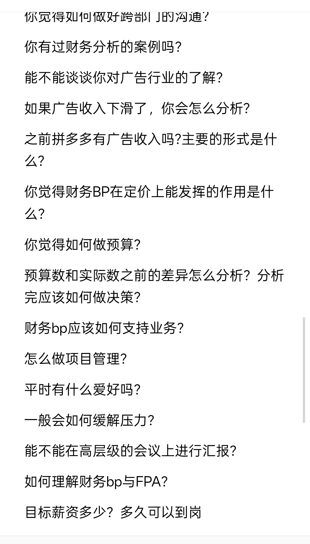 1.薪资待遇:约60w,四大经理2年,去拼多多蹲了一年后,离职后竞业1年,在家休息和准备了半年,陆陆续续找工作半年后,顺利上岸字节-广告-财务bp岗