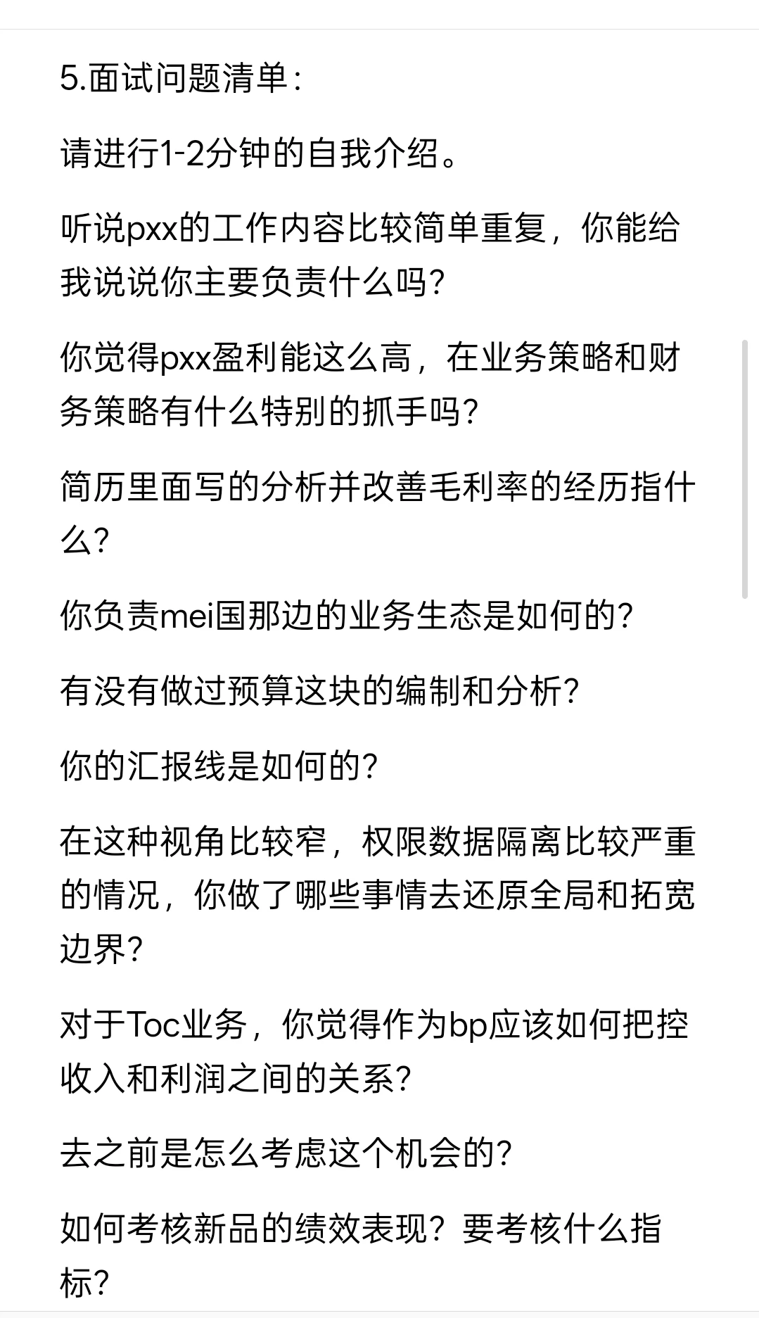5.面试问题清单: