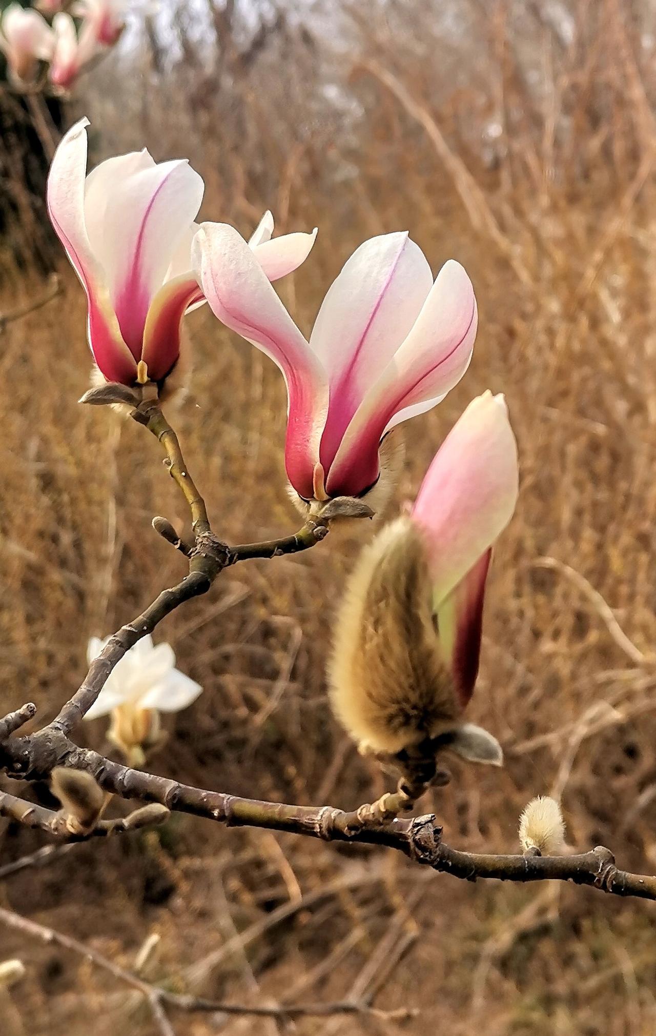 早春,这个品种的玉兰树率先绽放。高大的树上繁花似锦。春风吹过,数不清的花瓣如蝴蝶飞舞,齐刷刷扇动翅膀,将阵阵清香播撒开来,周遭芬芳如兰!只可惜花期太过短暂,花朵盛开后便开始飘落花瓣,树下满是一地落花。